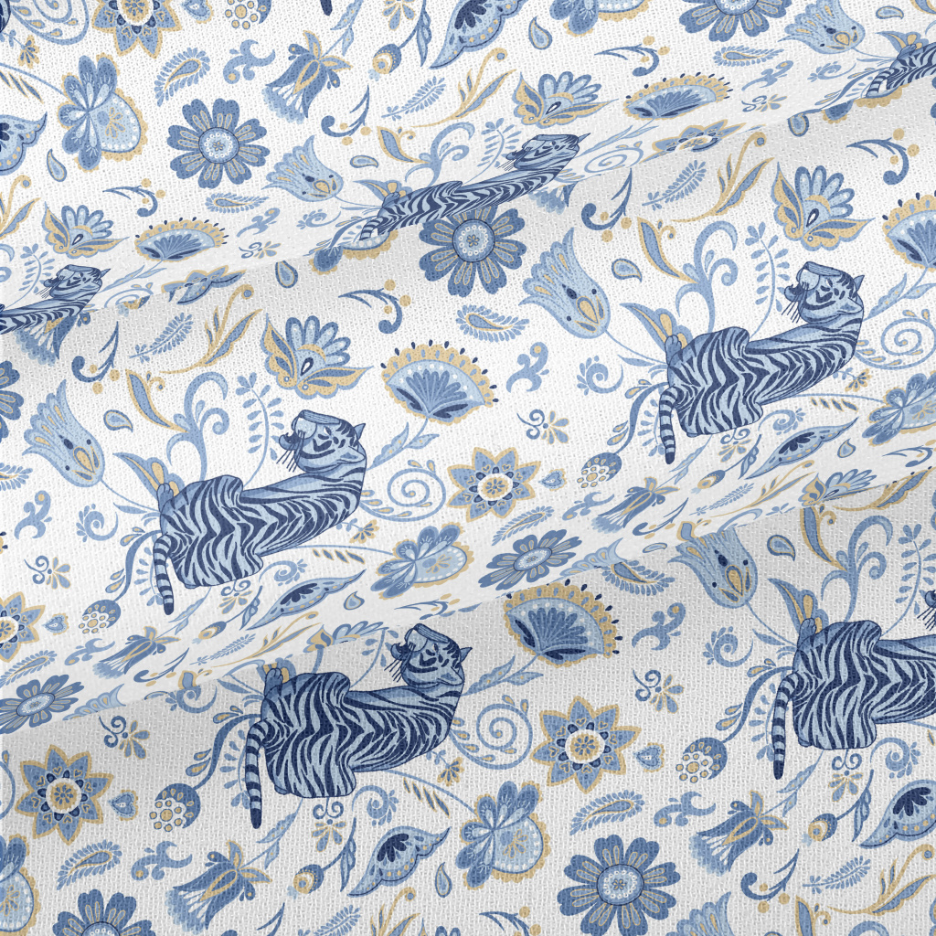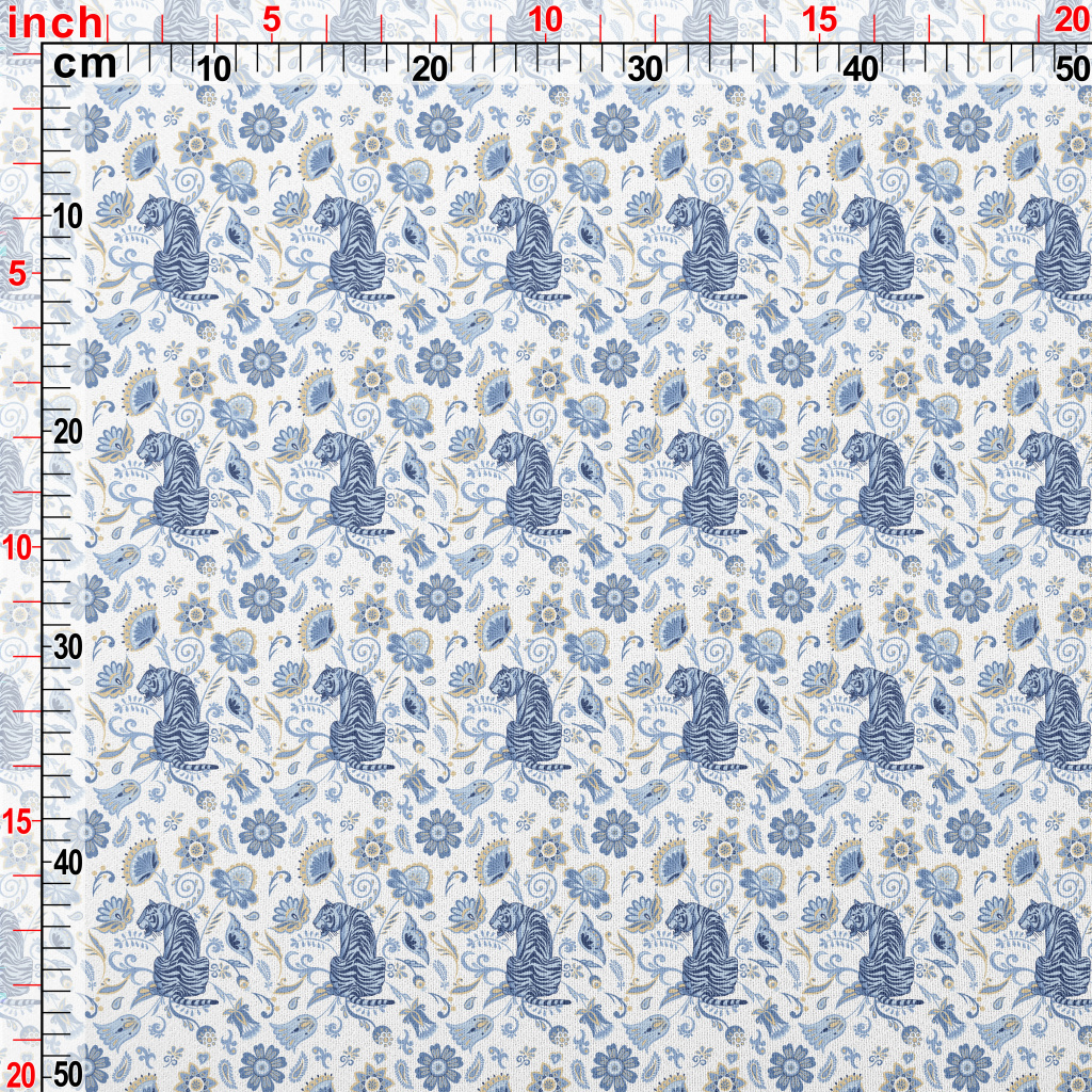 藍色老虎與花朵雪紡布(幅寬150公分)