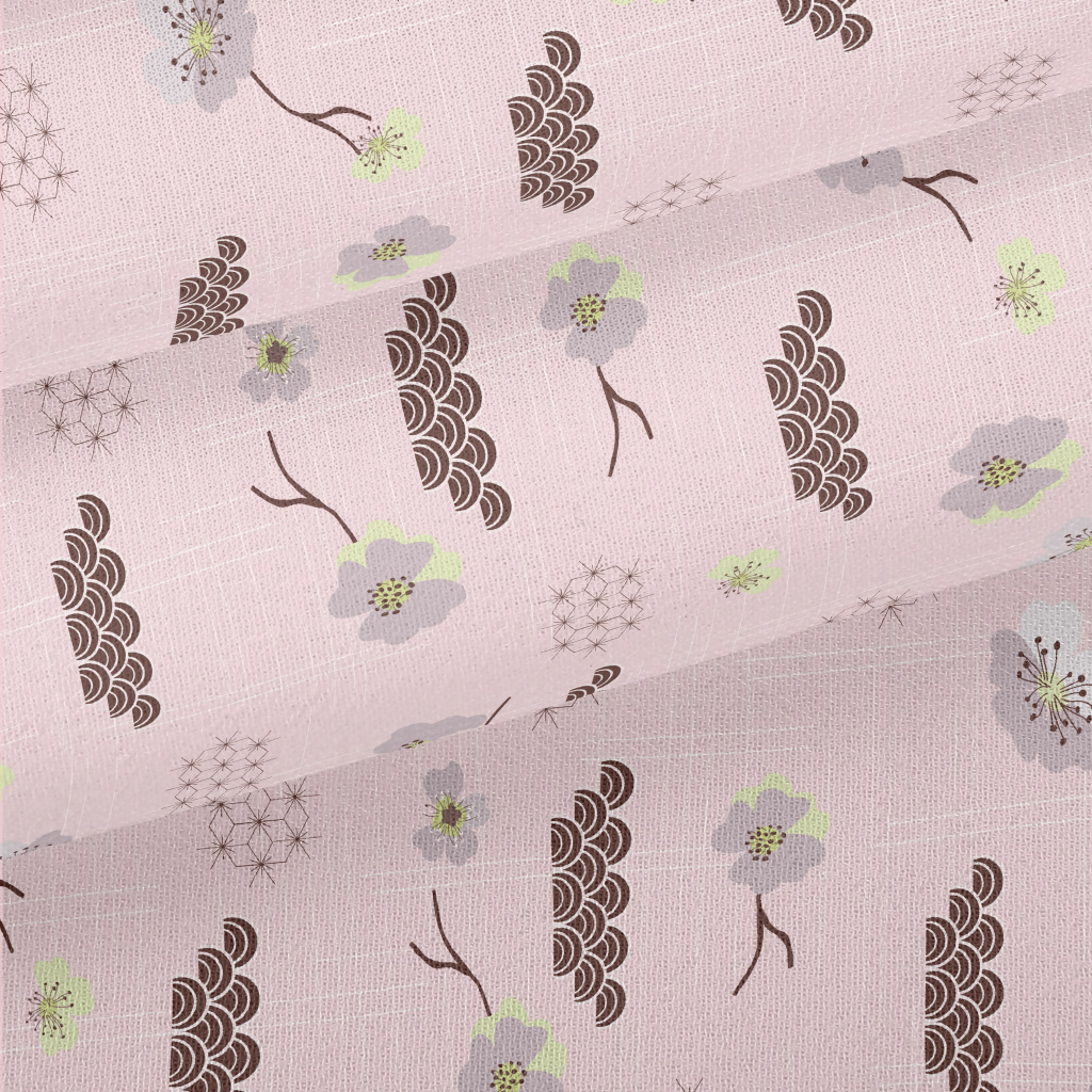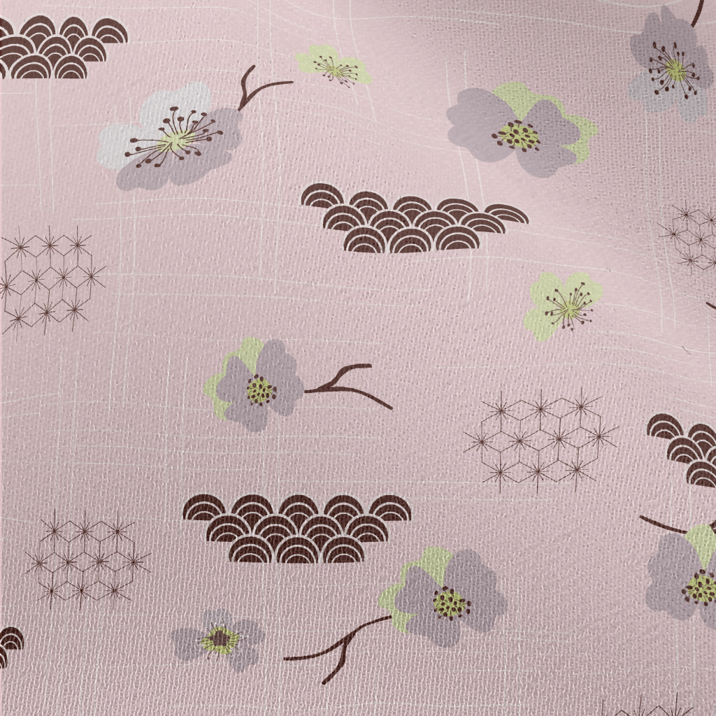 日式櫻花與海浪雪紡布(幅寬150公分)