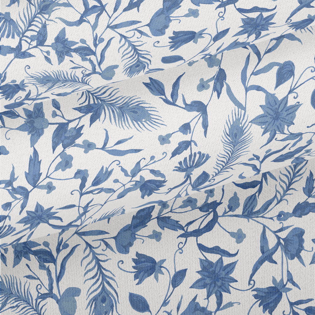 藍色水彩花朵雪紡布(幅寬150公分)