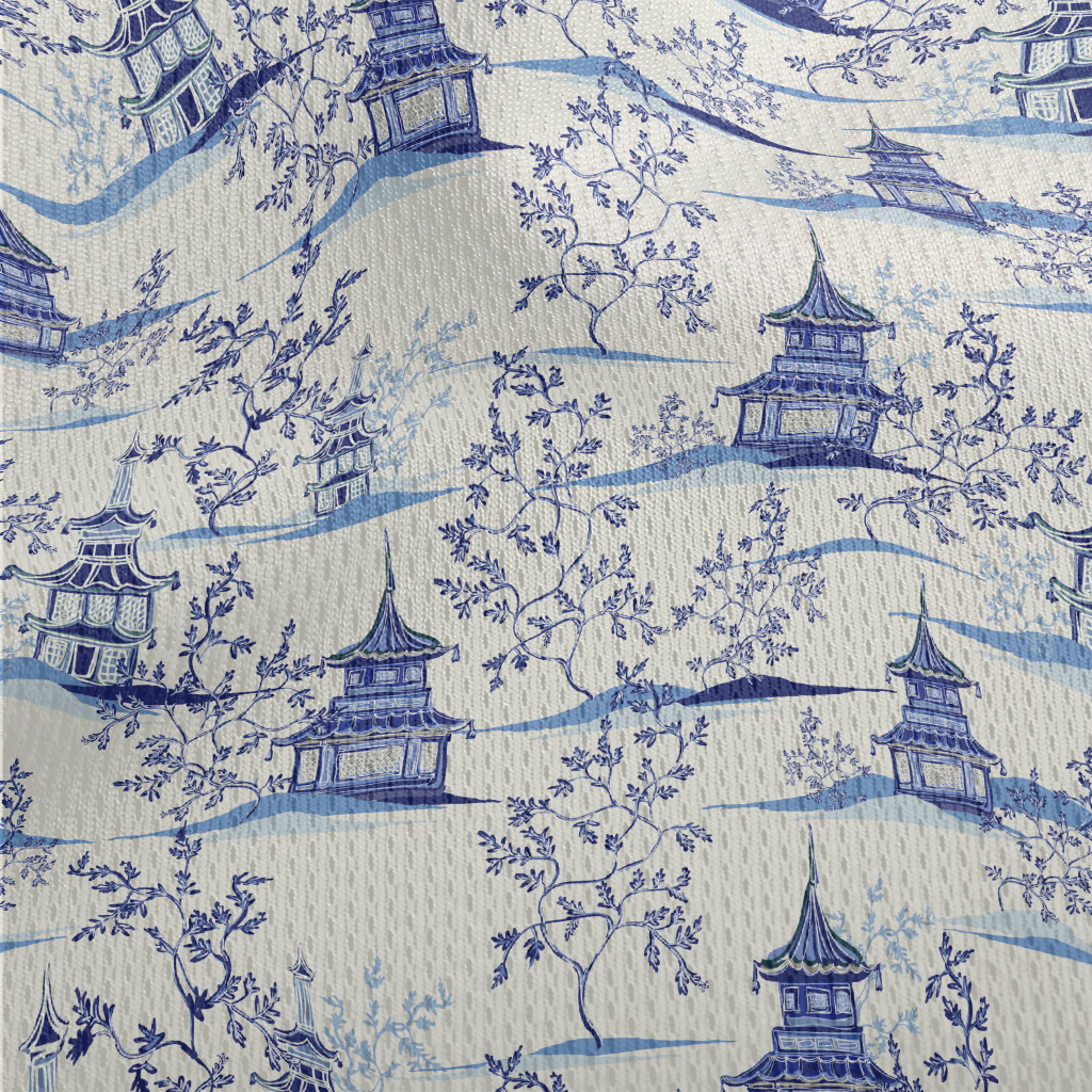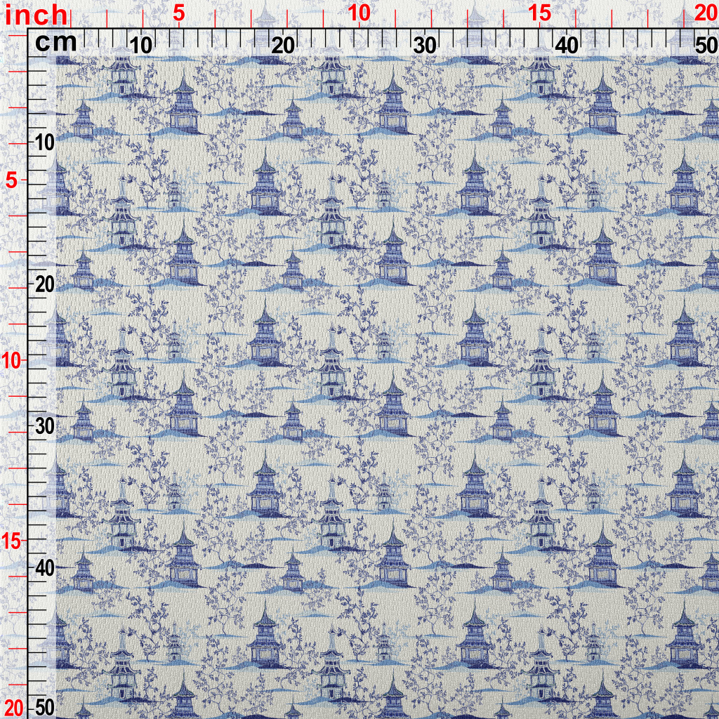 手繪中式建築鳥眼布(幅寬160公分)