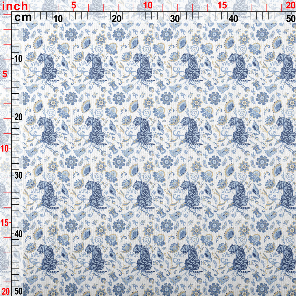藍色老虎與花朵毛巾布(幅寬160公分)