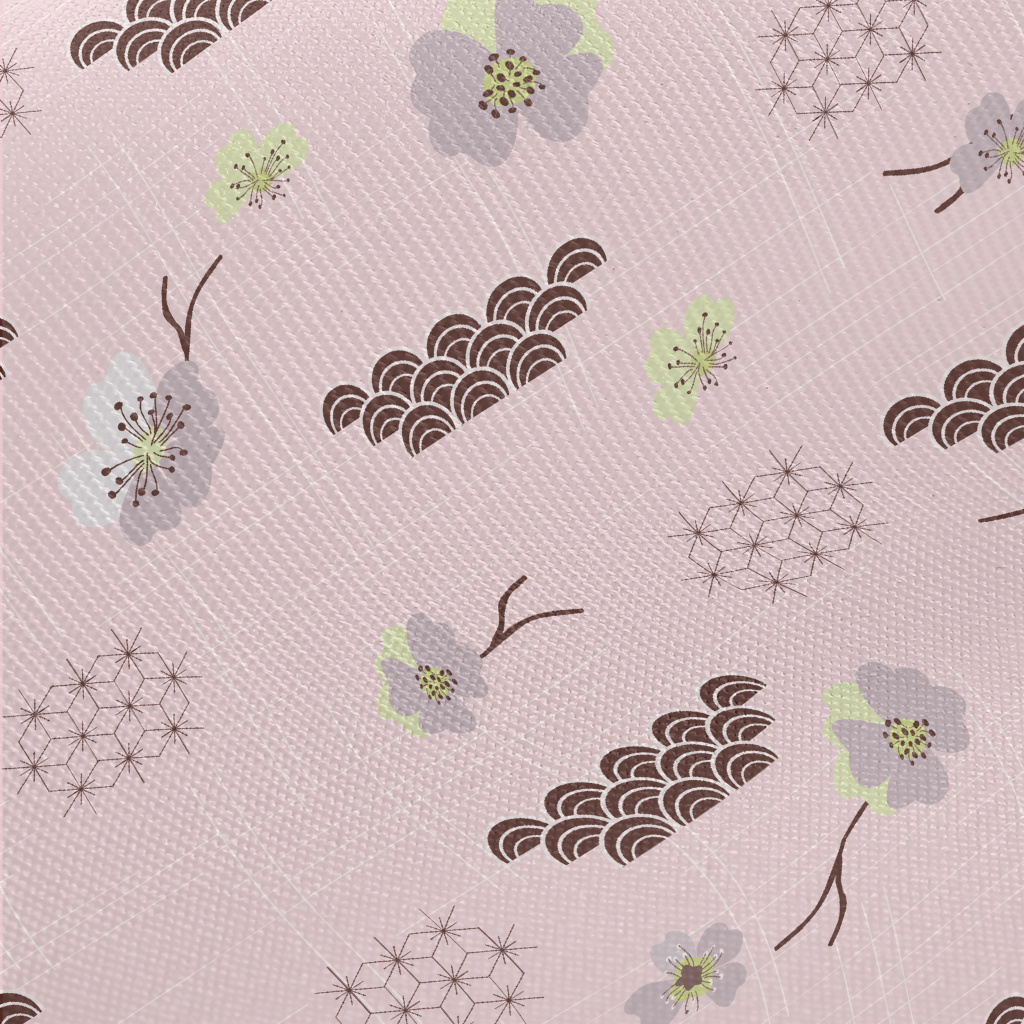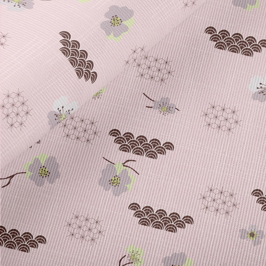 日式櫻花與海浪斜紋布(幅寬150公分)