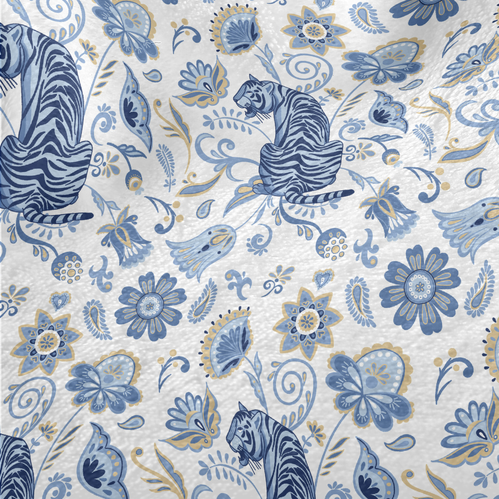 藍色老虎與花朵法蘭絨(幅寬150公分)