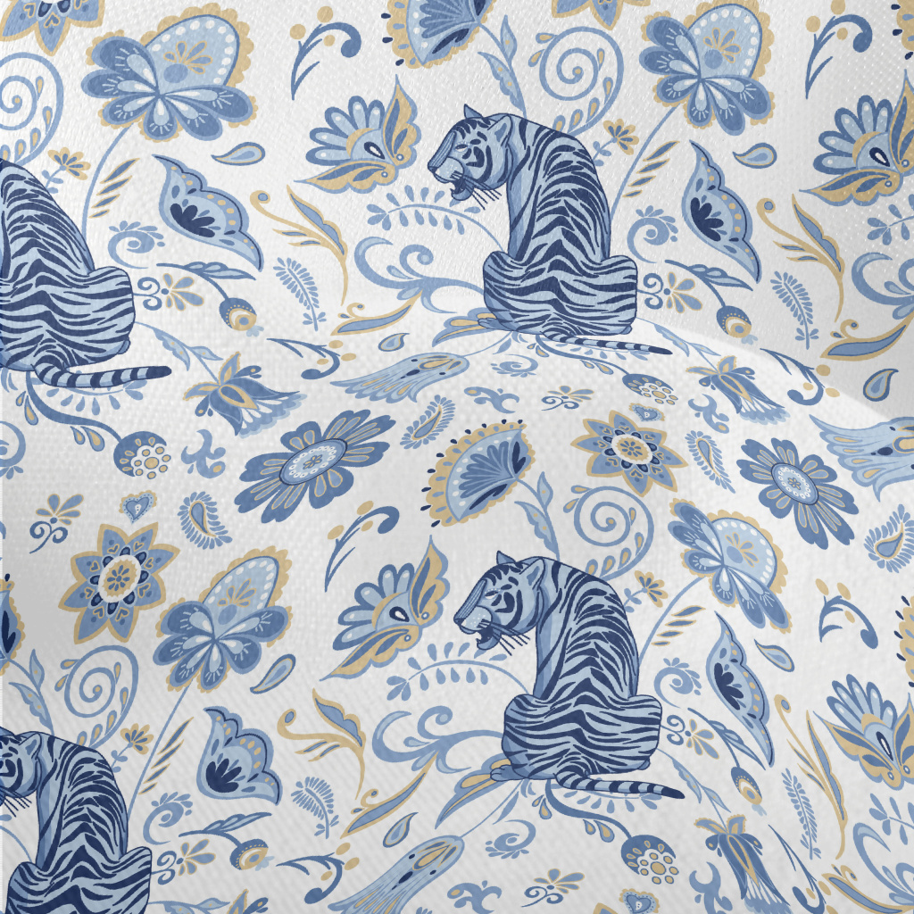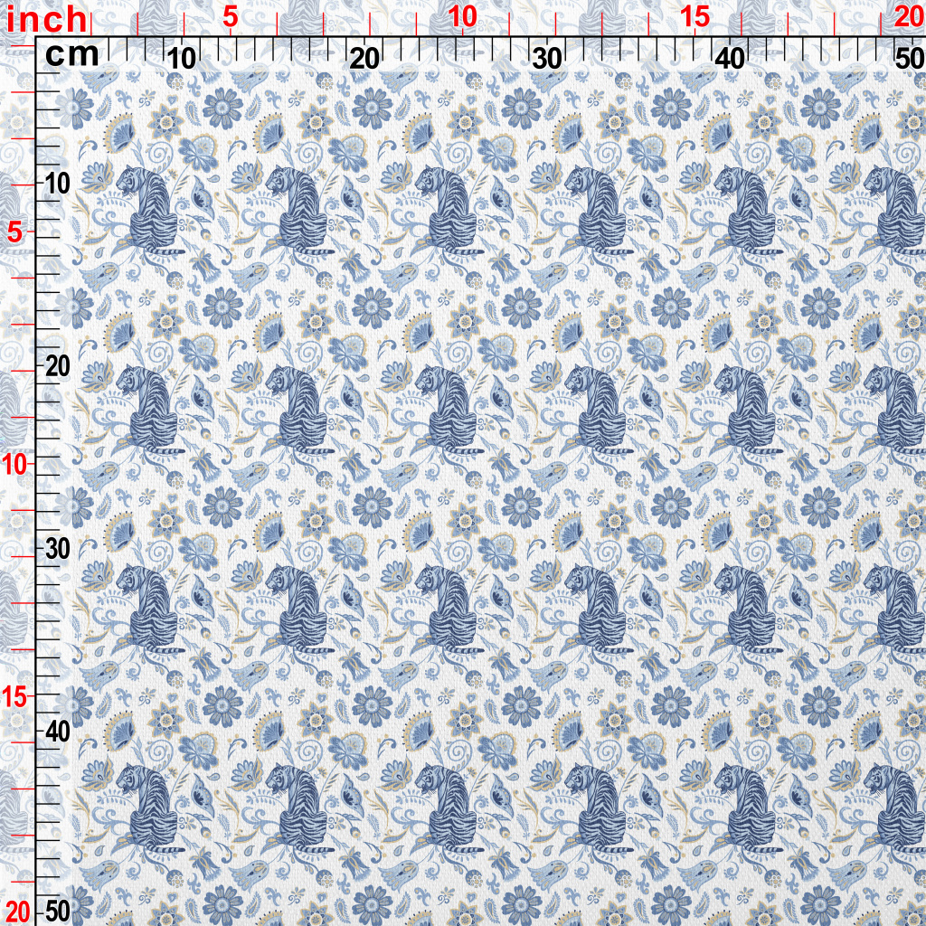 藍色老虎與花朵竹節麻(幅寬150公分)