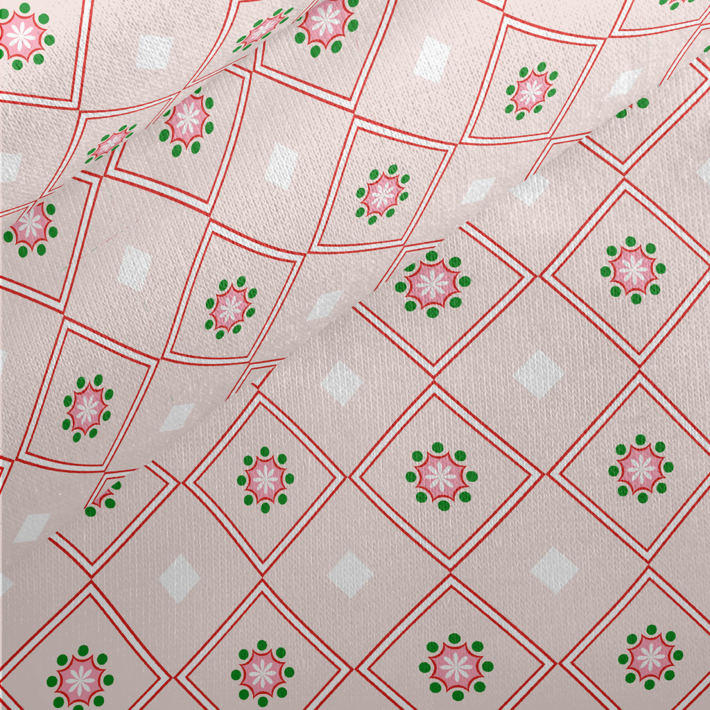 花朵圖案菱格刷毛布(幅寬150公分)