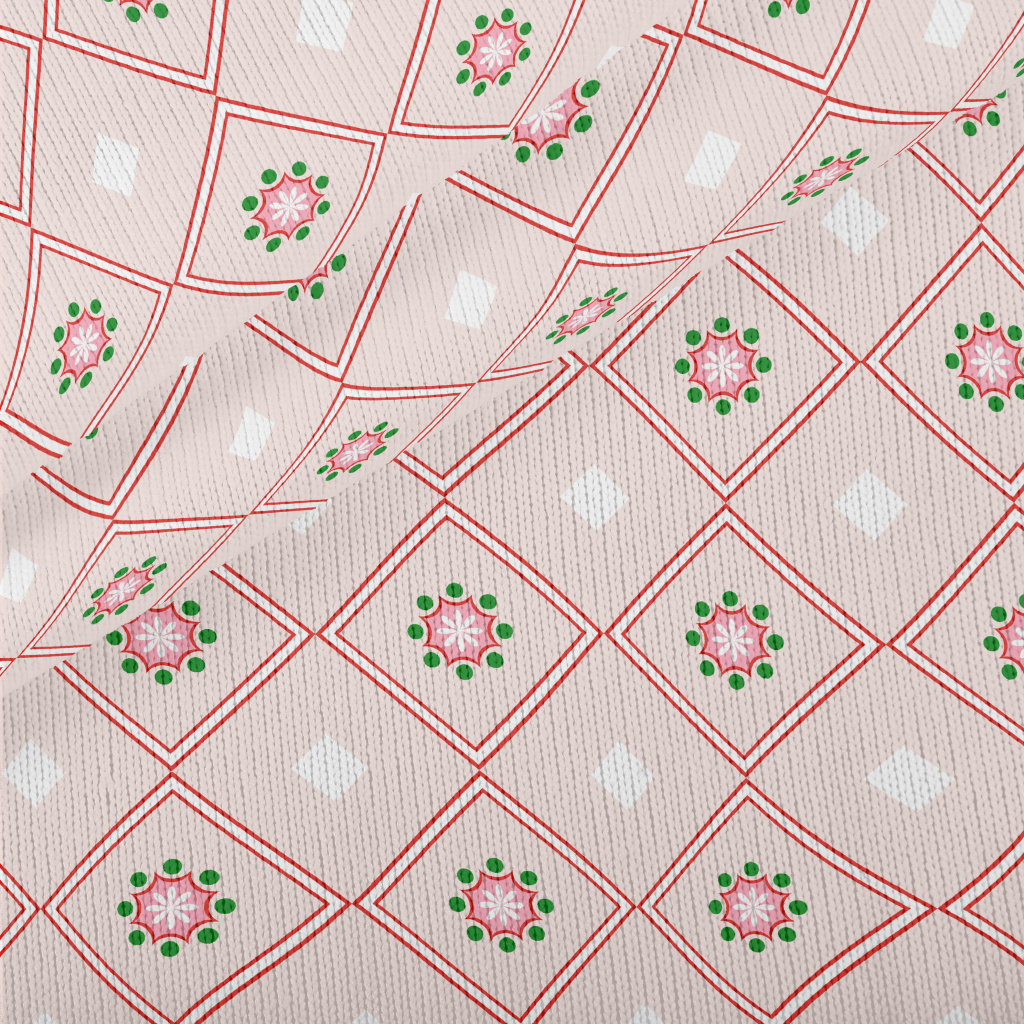 花朵圖案菱格仿毛衣布(幅寬150公分)