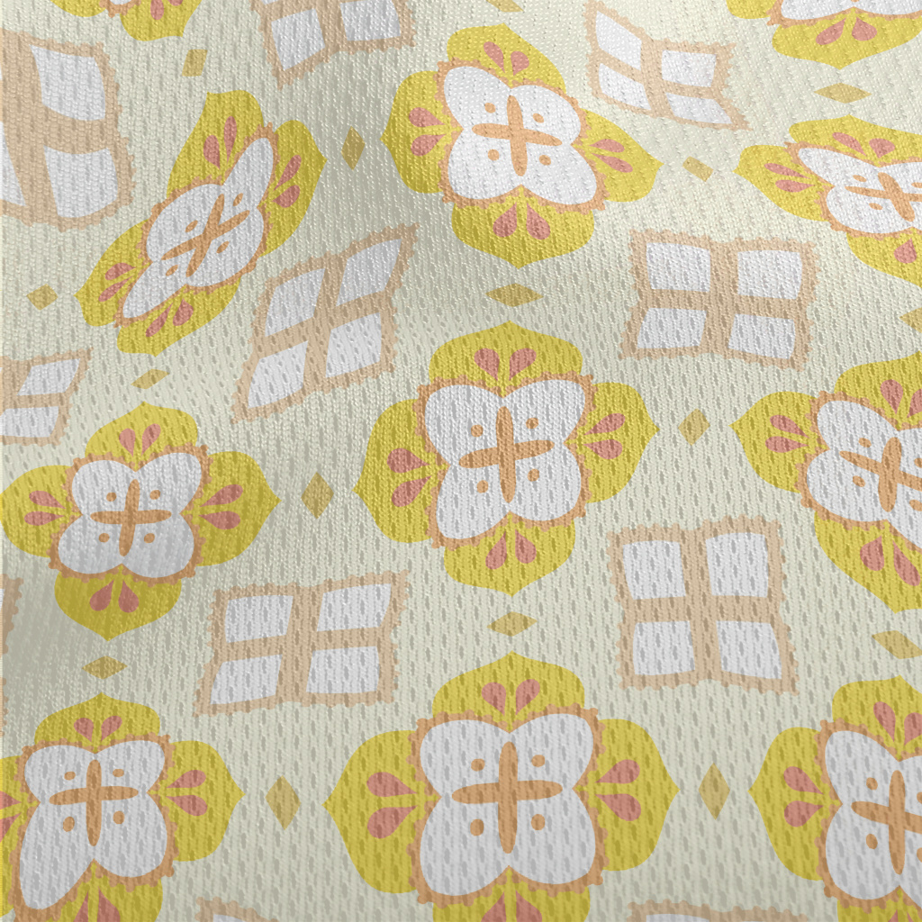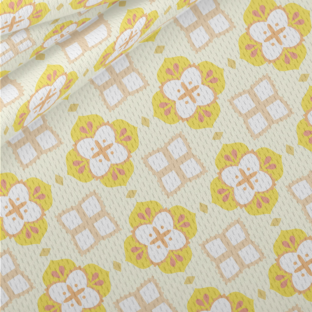 黃色磁磚設計鳥眼布(幅寬160公分)