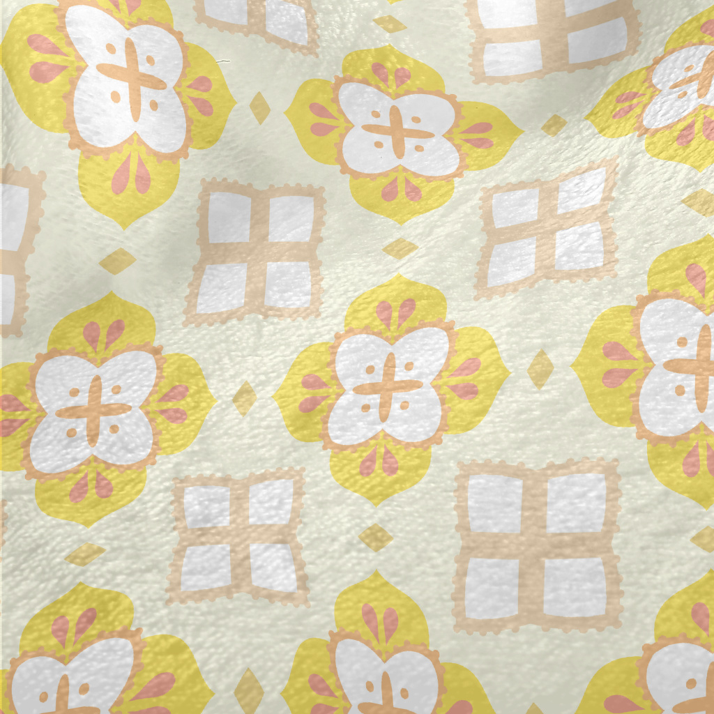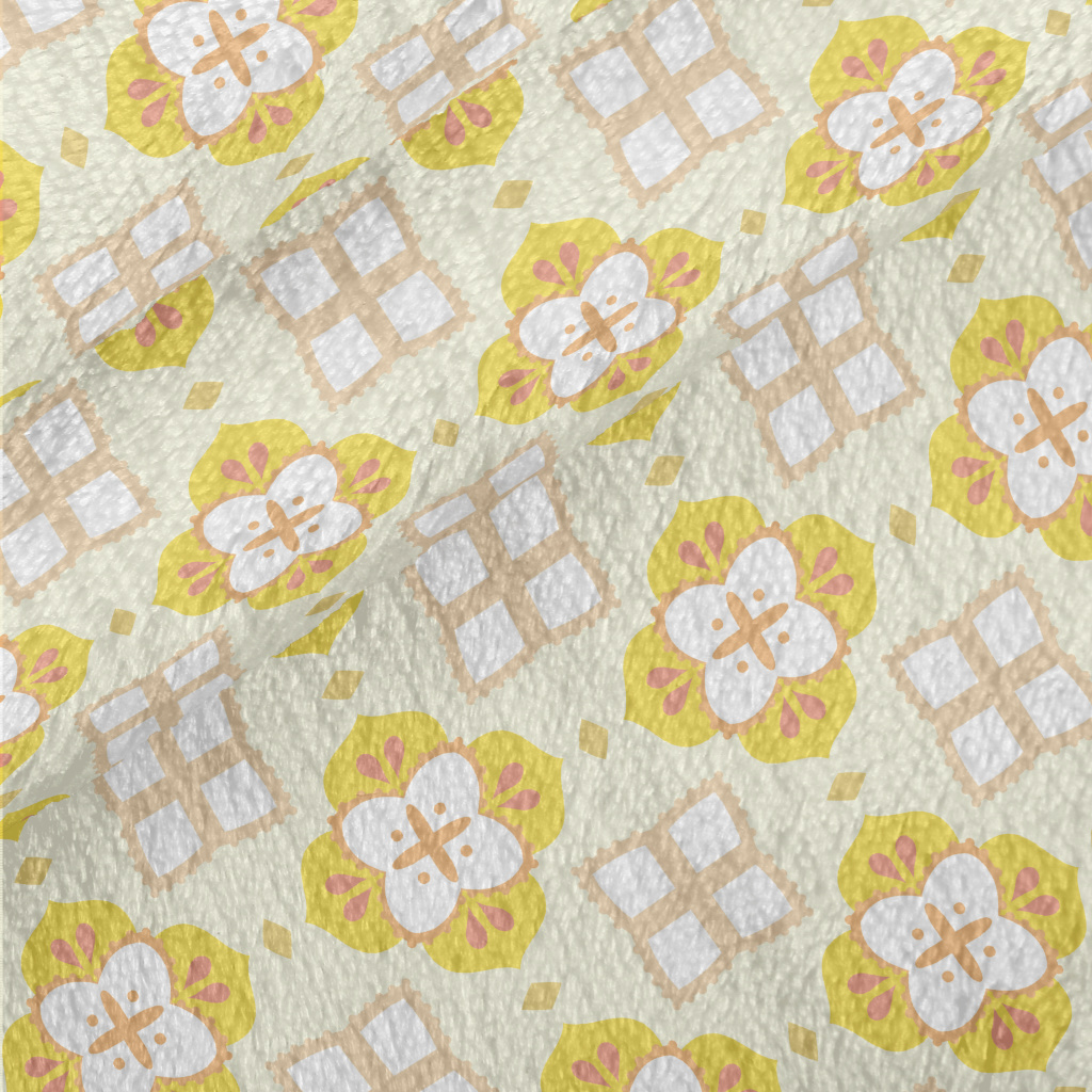 黃色磁磚設計法蘭絨(幅寬150公分)