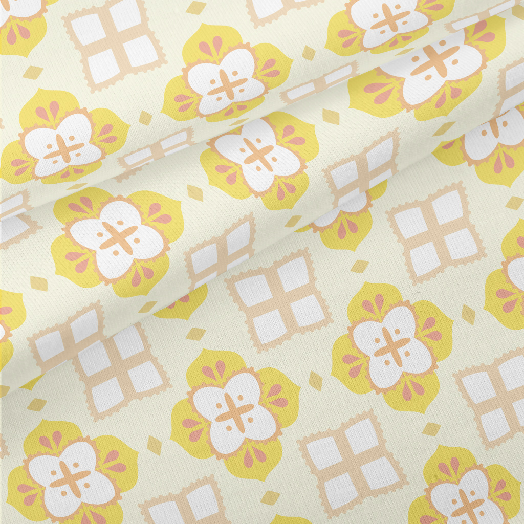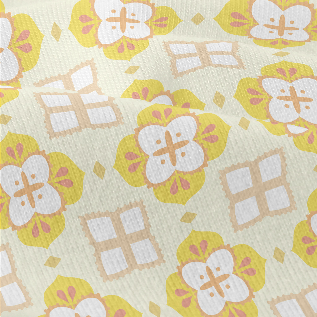 黃色磁磚設計仿棉布(幅寬150公分)