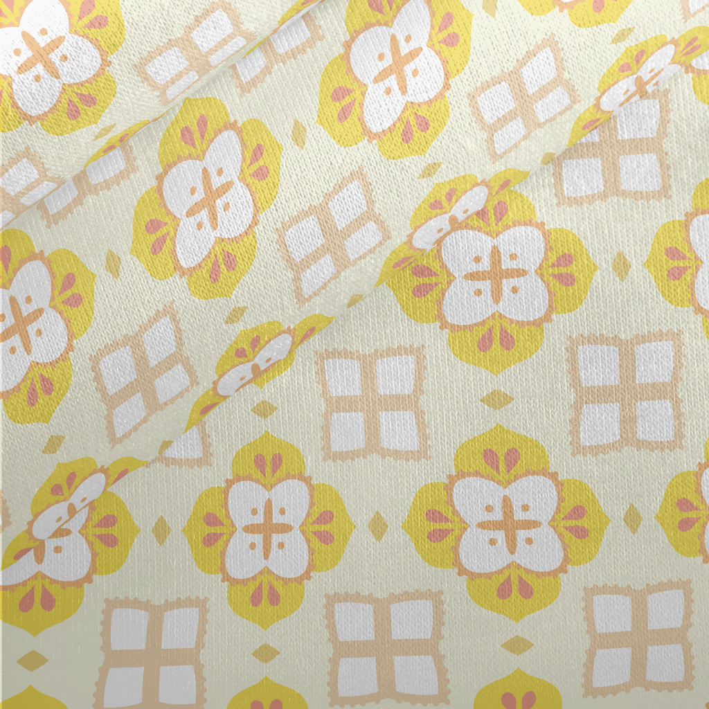 黃色磁磚設計刷毛布(幅寬150公分)