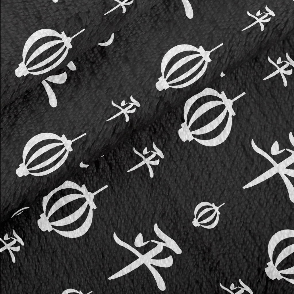 中國書法與燈籠法蘭絨(幅寬150公分)