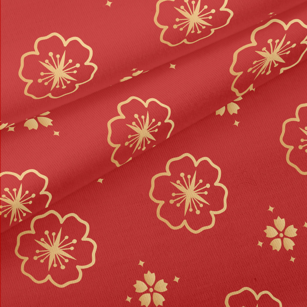 金色櫻花圖案仿棉布(幅寬150公分)