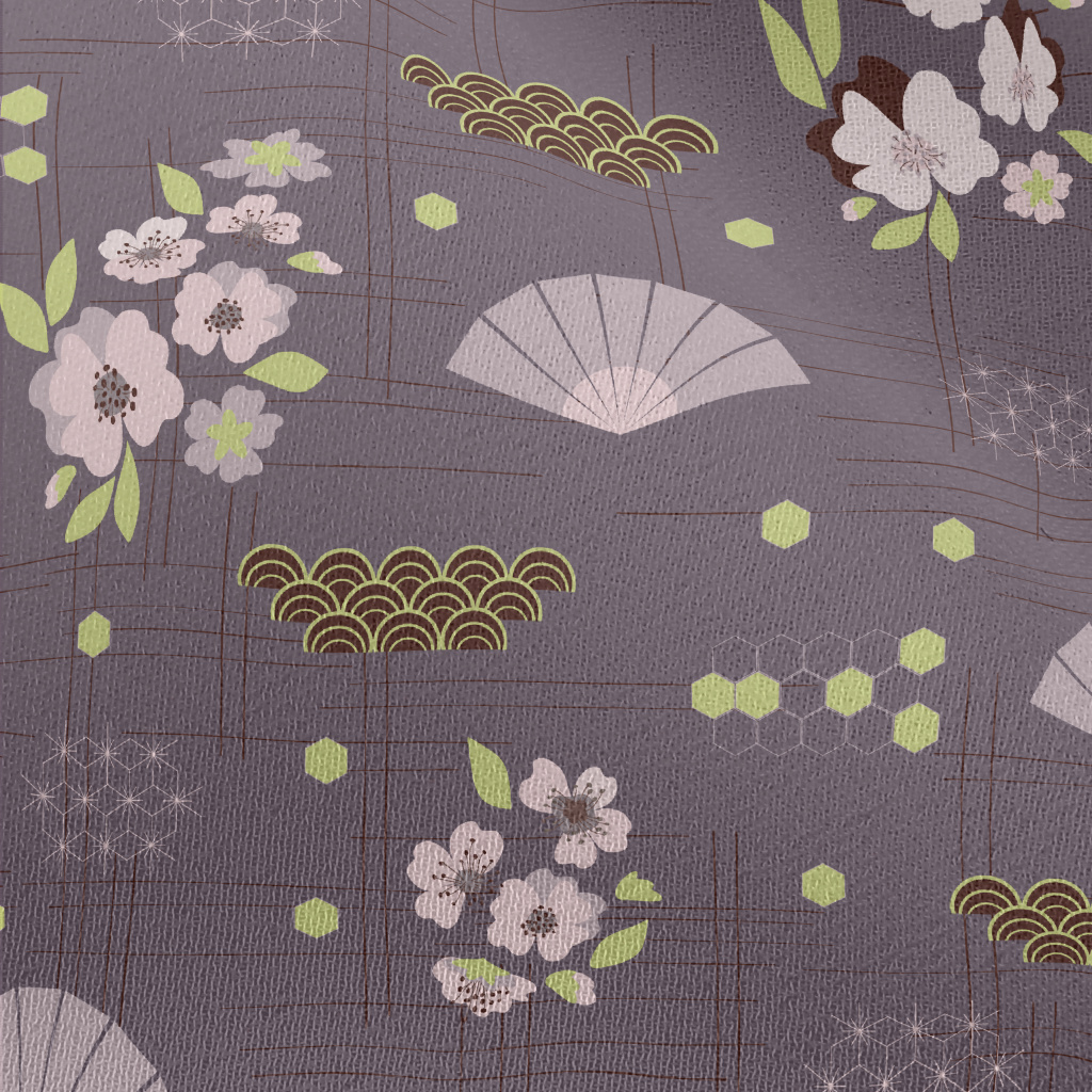卡通櫻花與摺扇雪紡布(幅寬150公分)