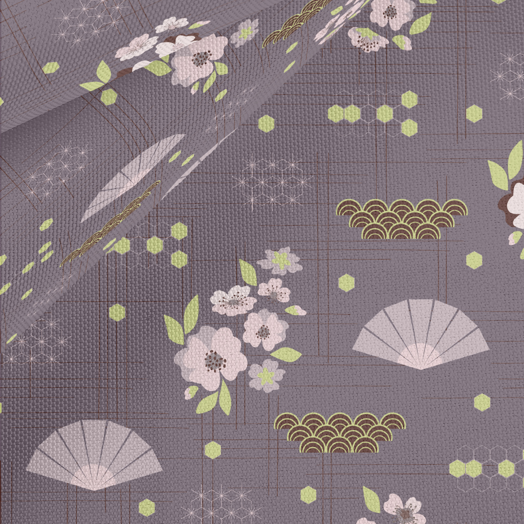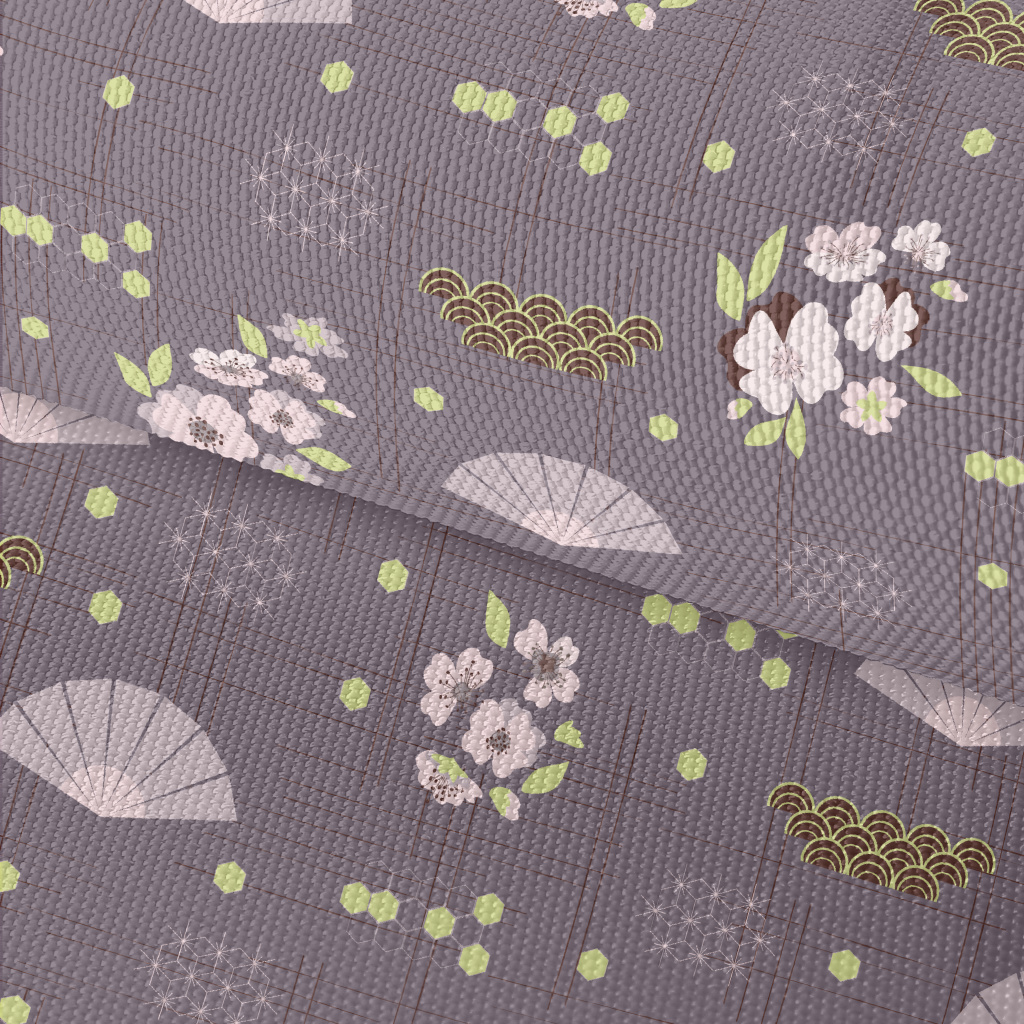 卡通櫻花與摺扇牛津布(幅寬150公分)