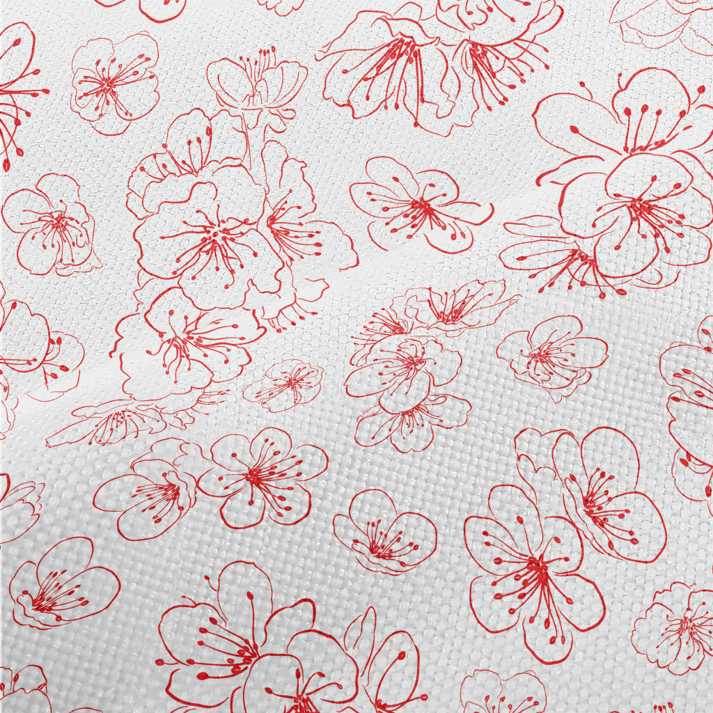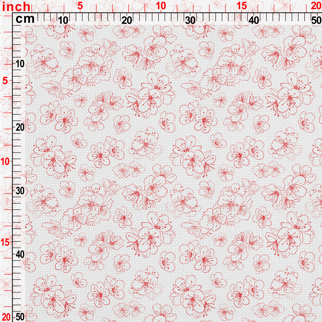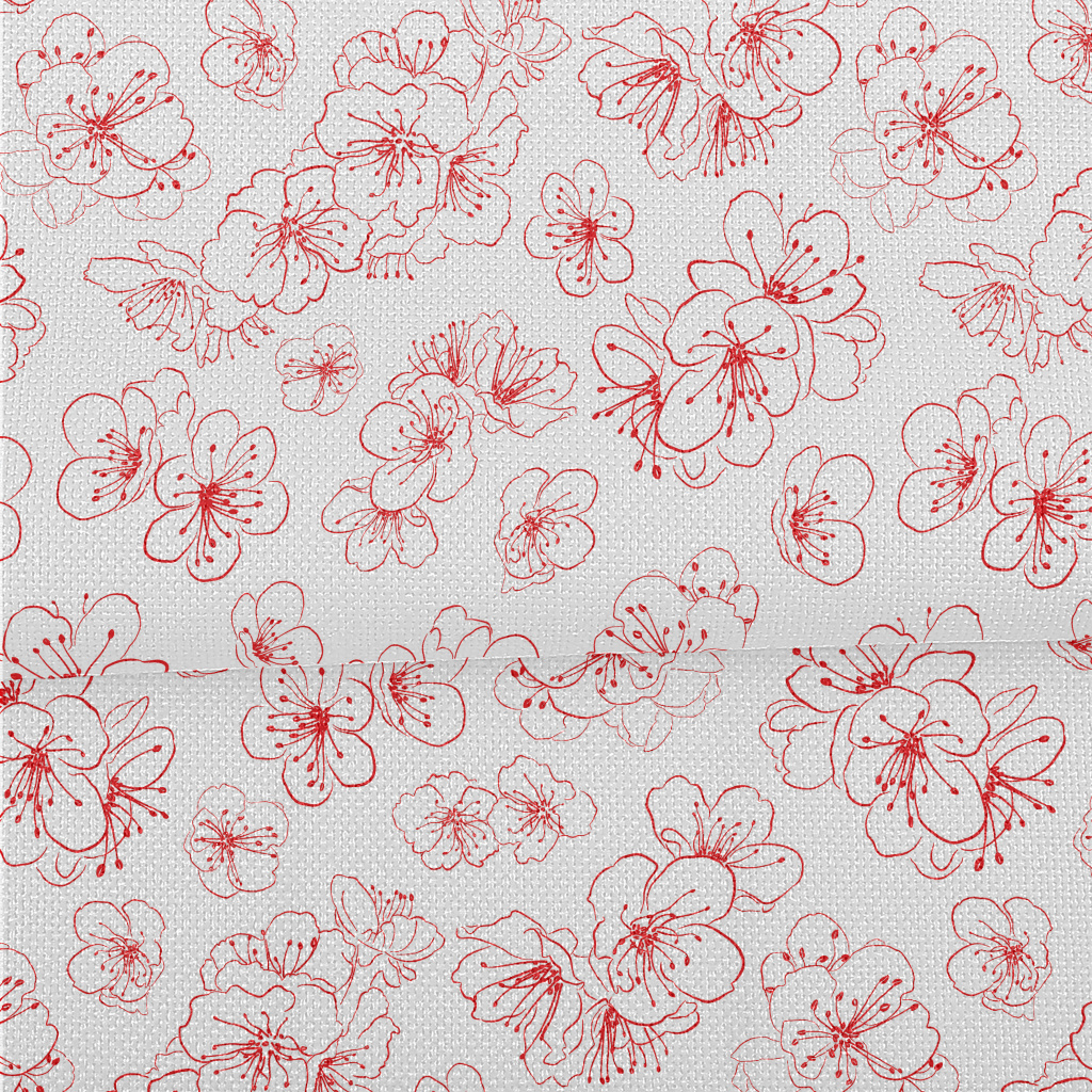 紅色線條櫻花麻布(幅寬150公分)