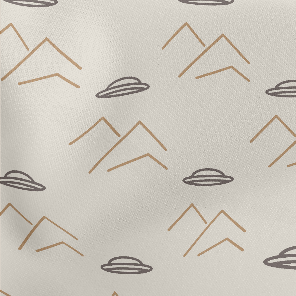 卡通飛碟與山脈羅馬布(幅寬160公分)
