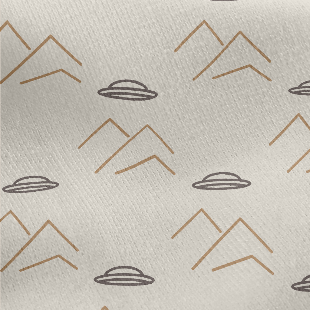 卡通飛碟與山脈刷毛布(幅寬150公分)
