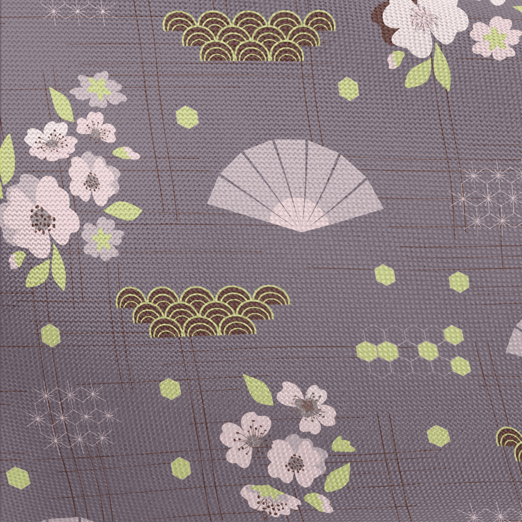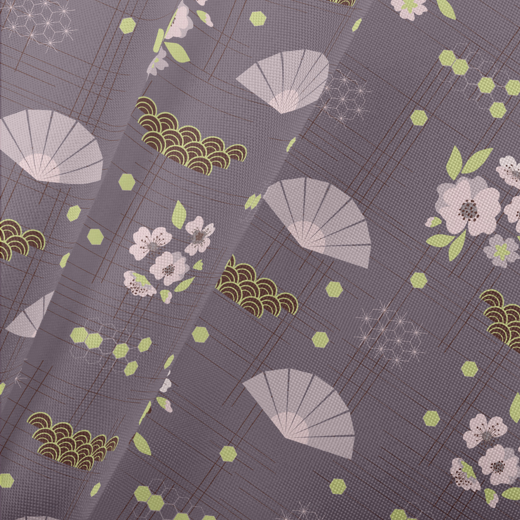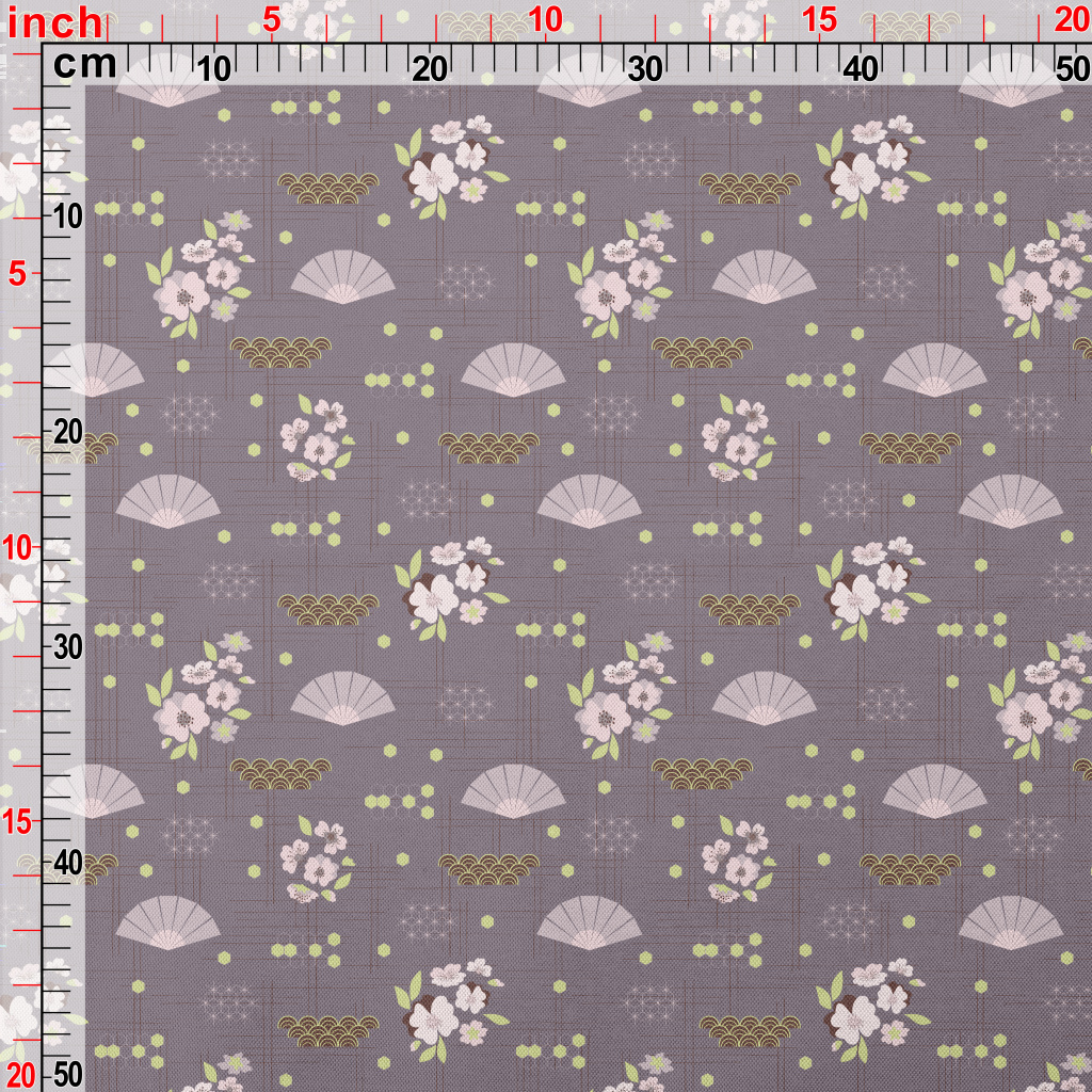 卡通櫻花與摺扇春亞紡(幅寬160公分)