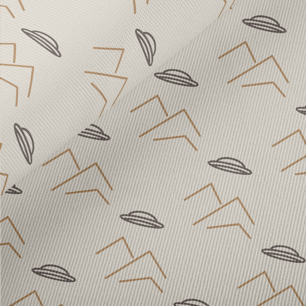 卡通飛碟與山脈厚棉布(幅寬150公分)