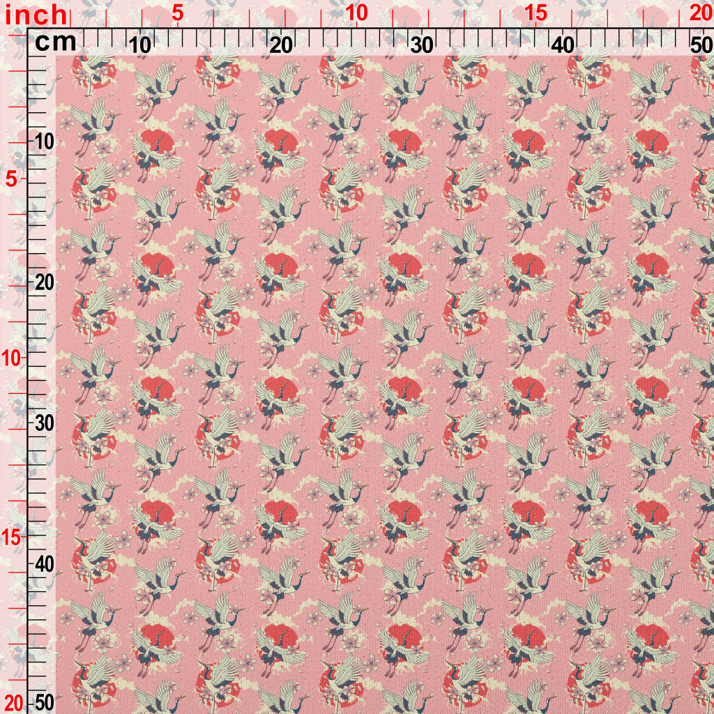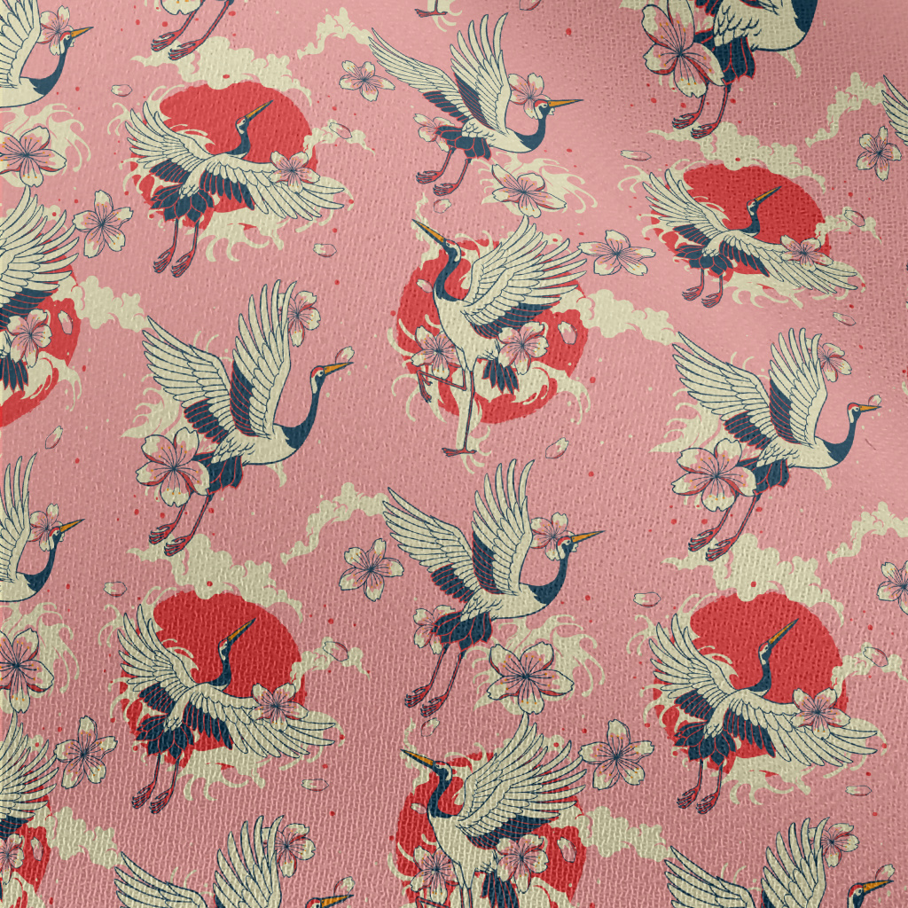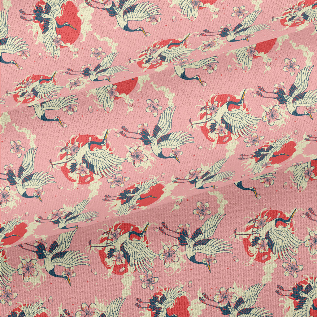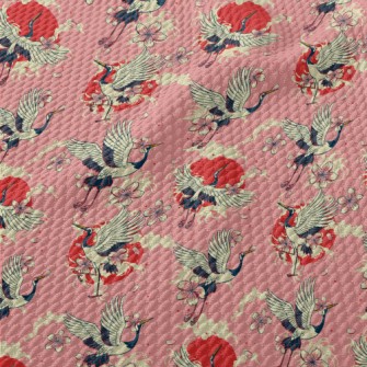 復古手繪仙鶴雪紡布(幅寬150公分)