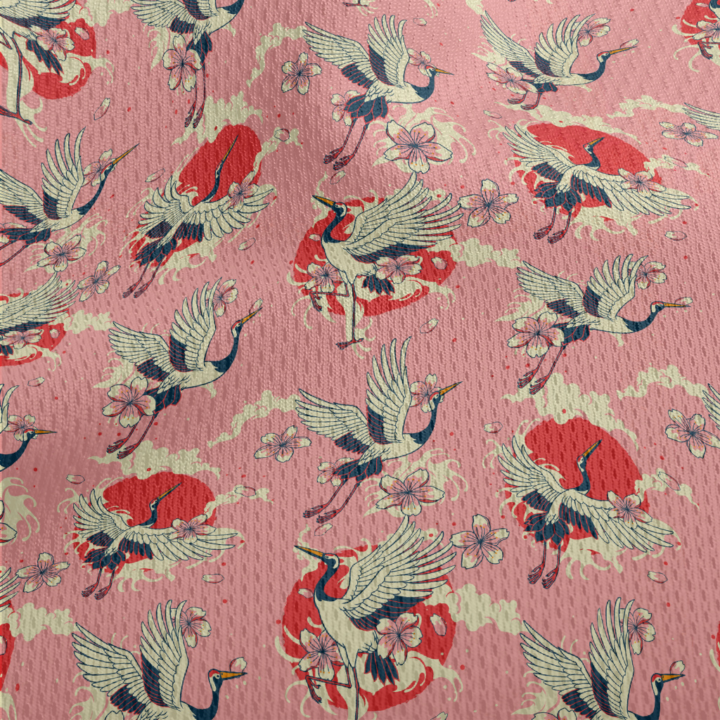 復古手繪仙鶴鳥眼布(幅寬160公分)