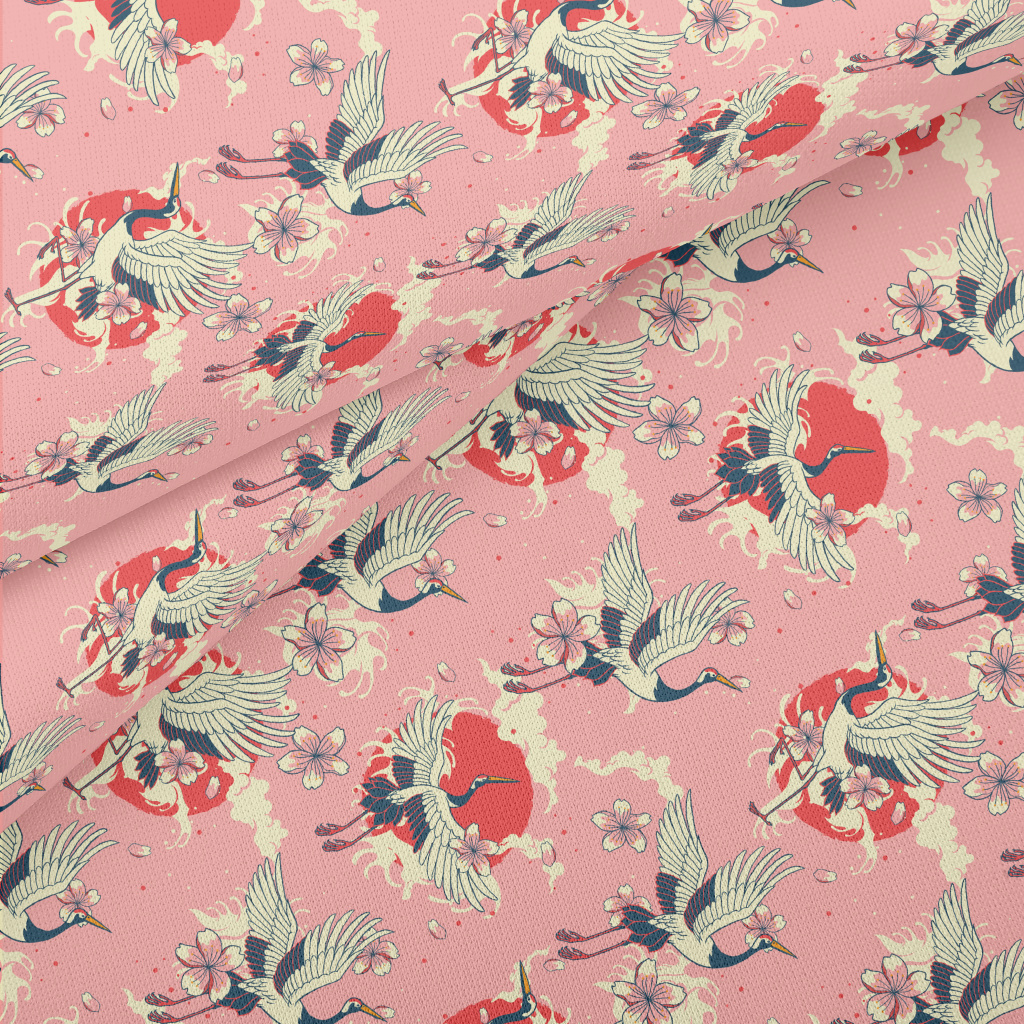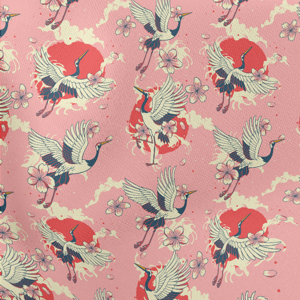 復古手繪仙鶴羅馬布(幅寬160公分)
