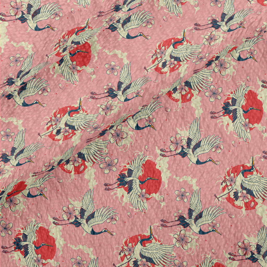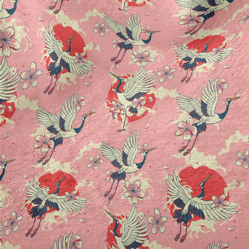復古手繪仙鶴法蘭絨(幅寬150公分)