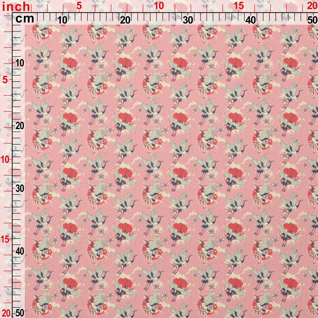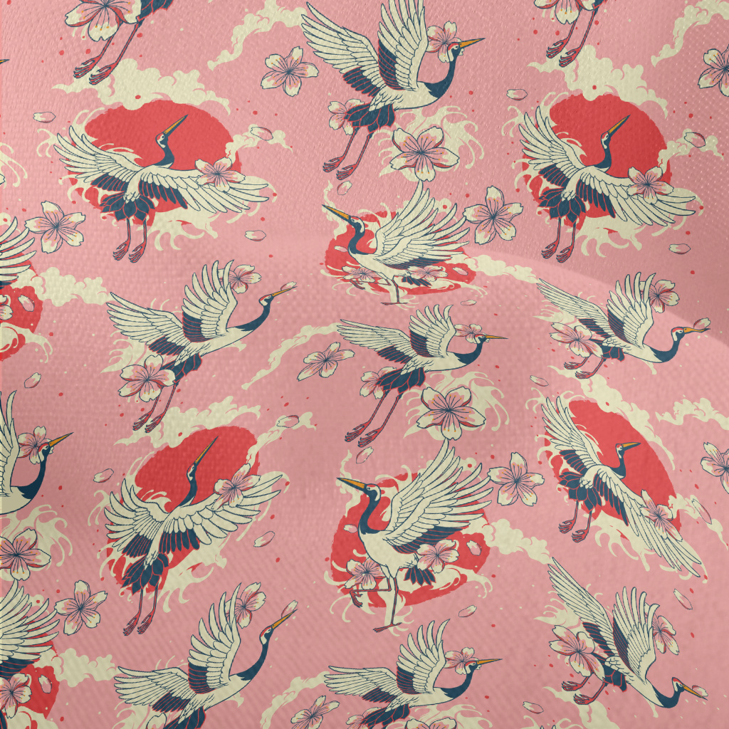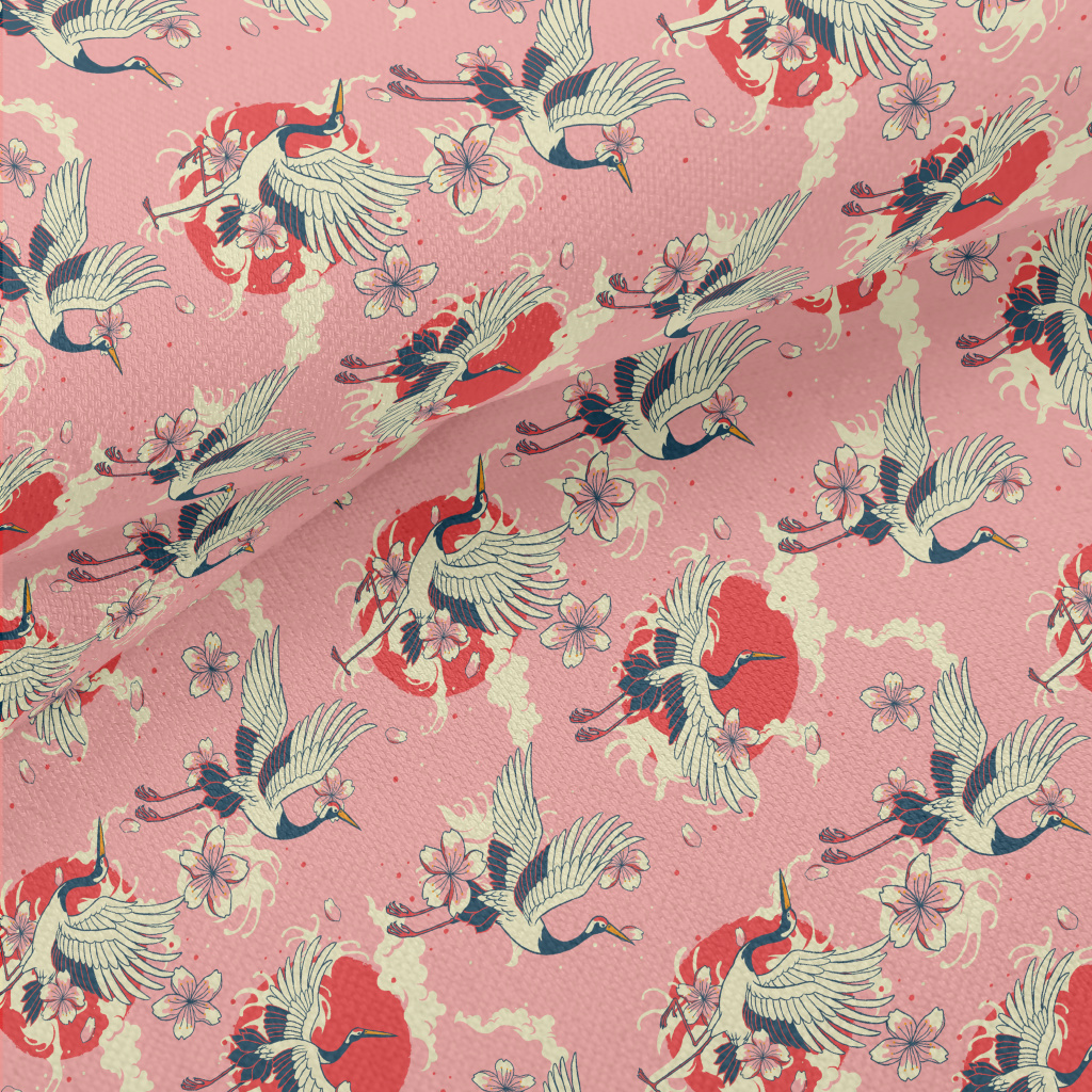 復古手繪仙鶴竹節麻(幅寬150公分)
