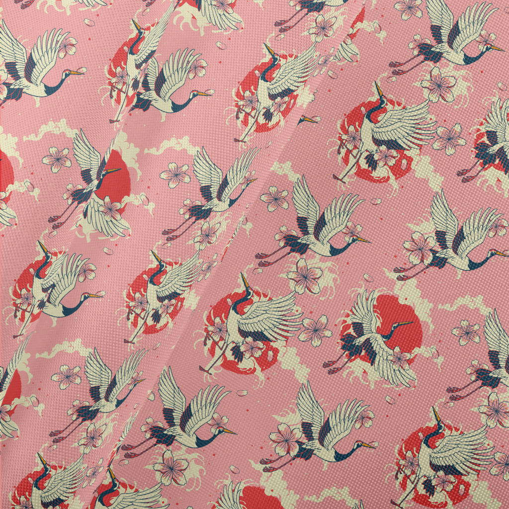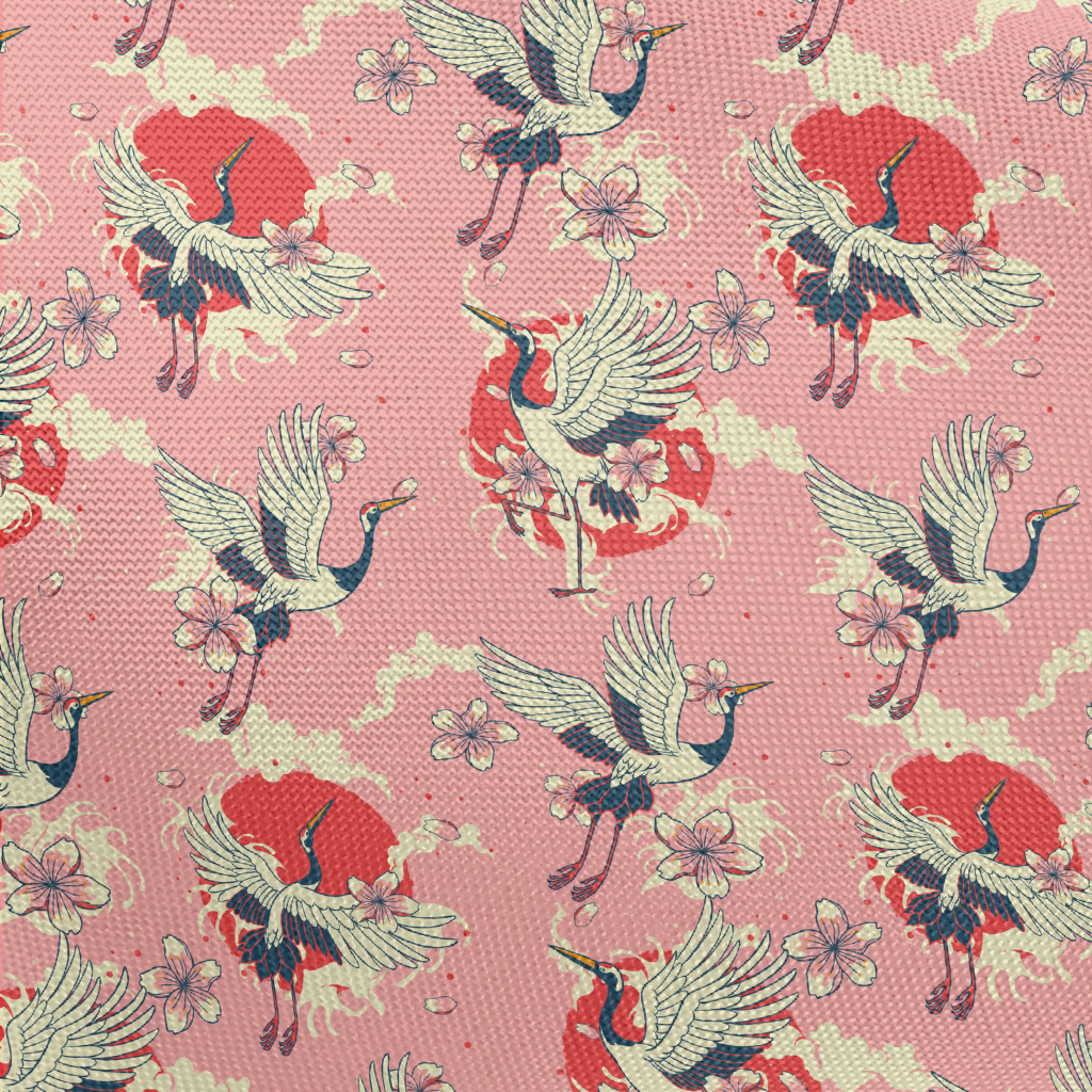 復古手繪仙鶴春亞紡(幅寬160公分)
