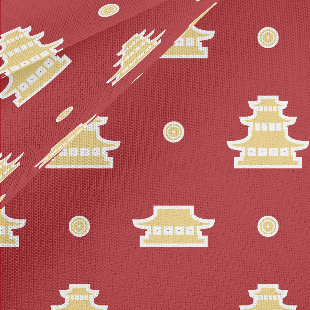 中式建築貼紙牛津布(幅寬150公分)