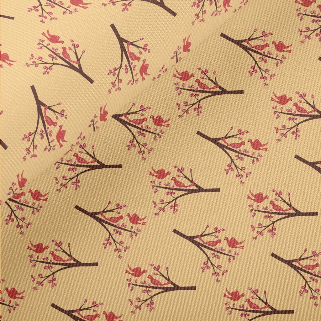 秋季鳥兒與樹枝斜紋布(幅寬150公分)