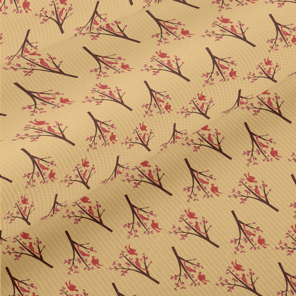 秋季鳥兒與樹枝雙斜布(幅寬150公分)