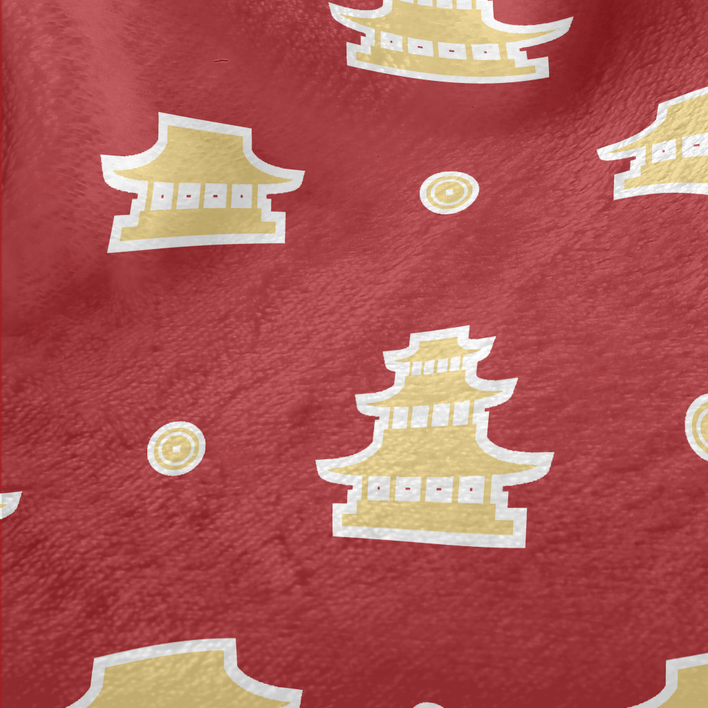 中式建築貼紙法蘭絨(幅寬150公分)