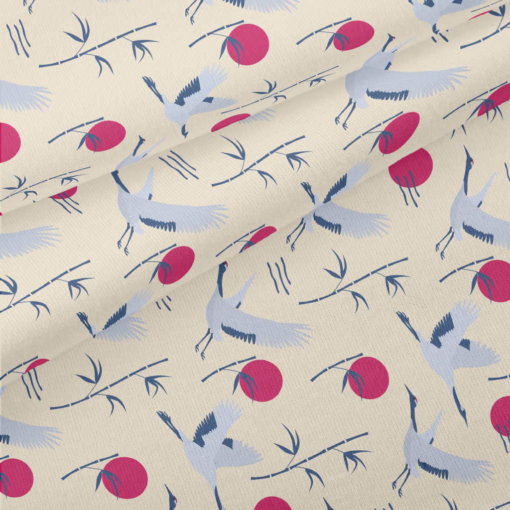 飛行鶴與竹子仿棉布(幅寬150公分)