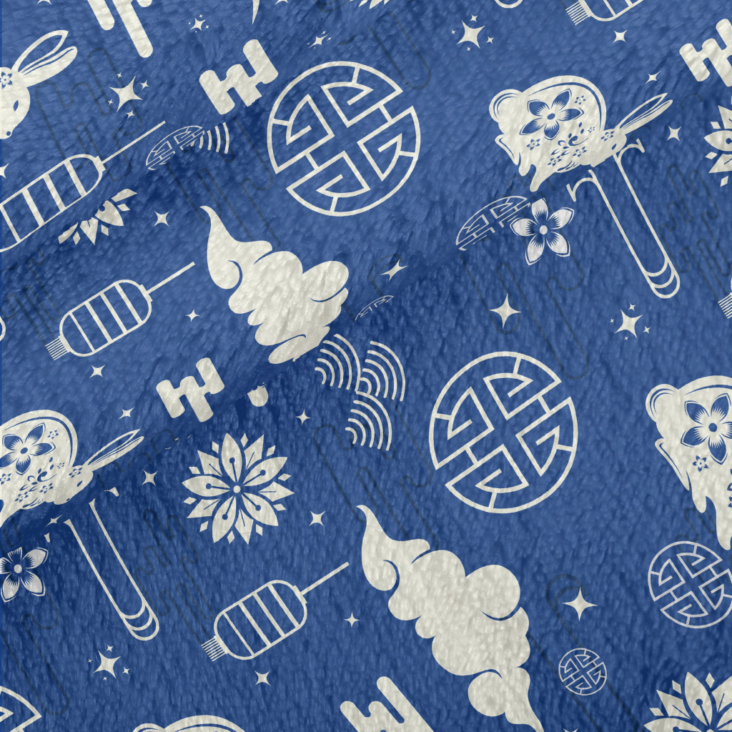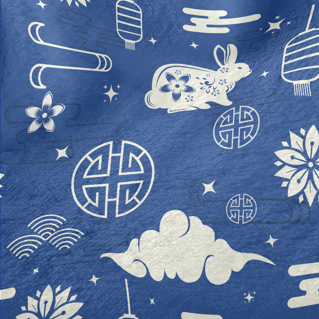 中式藍色兔年法蘭絨(幅寬150公分)