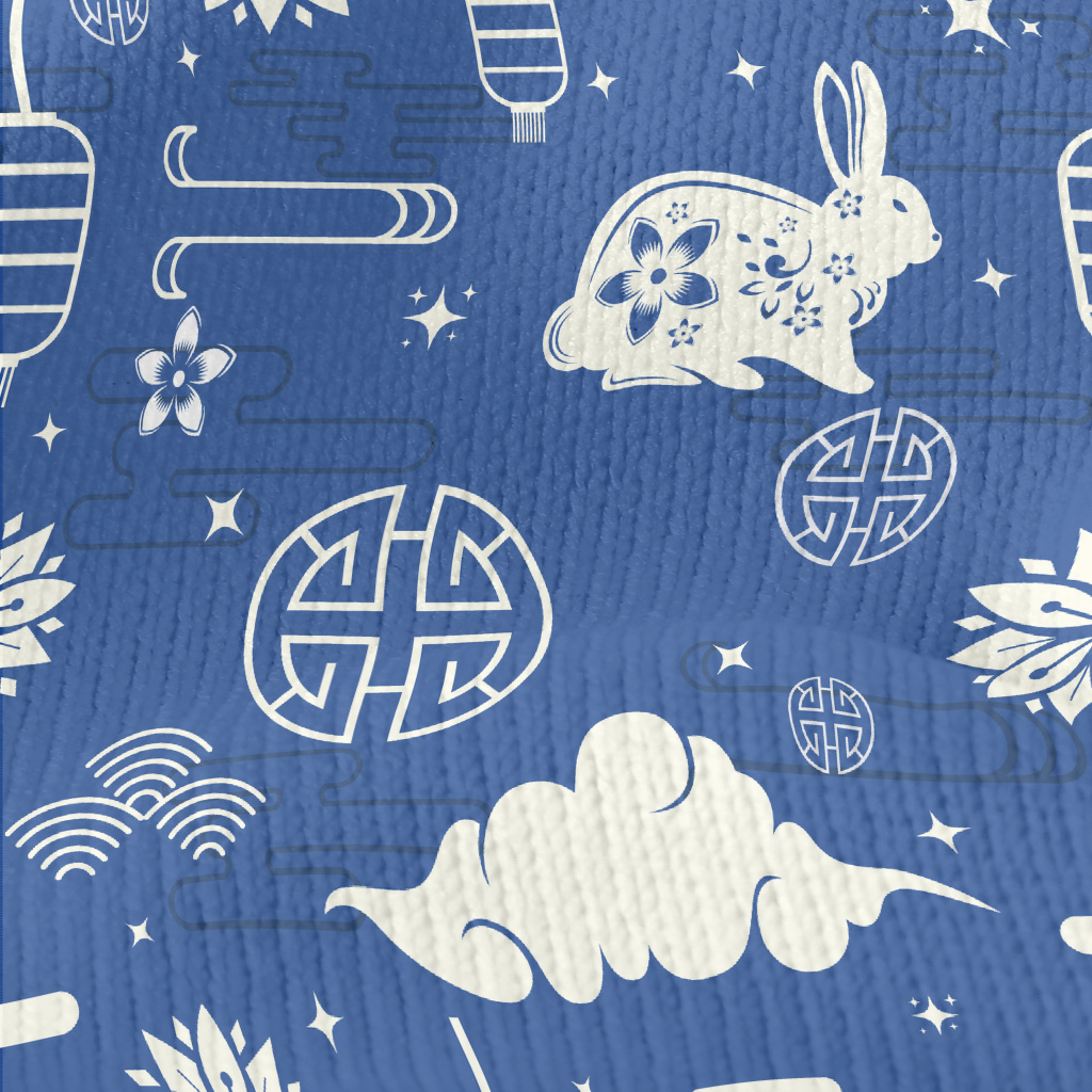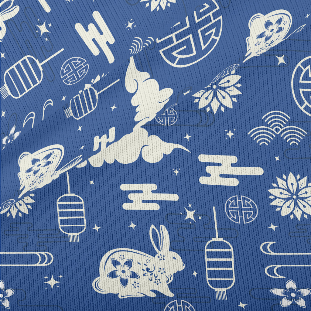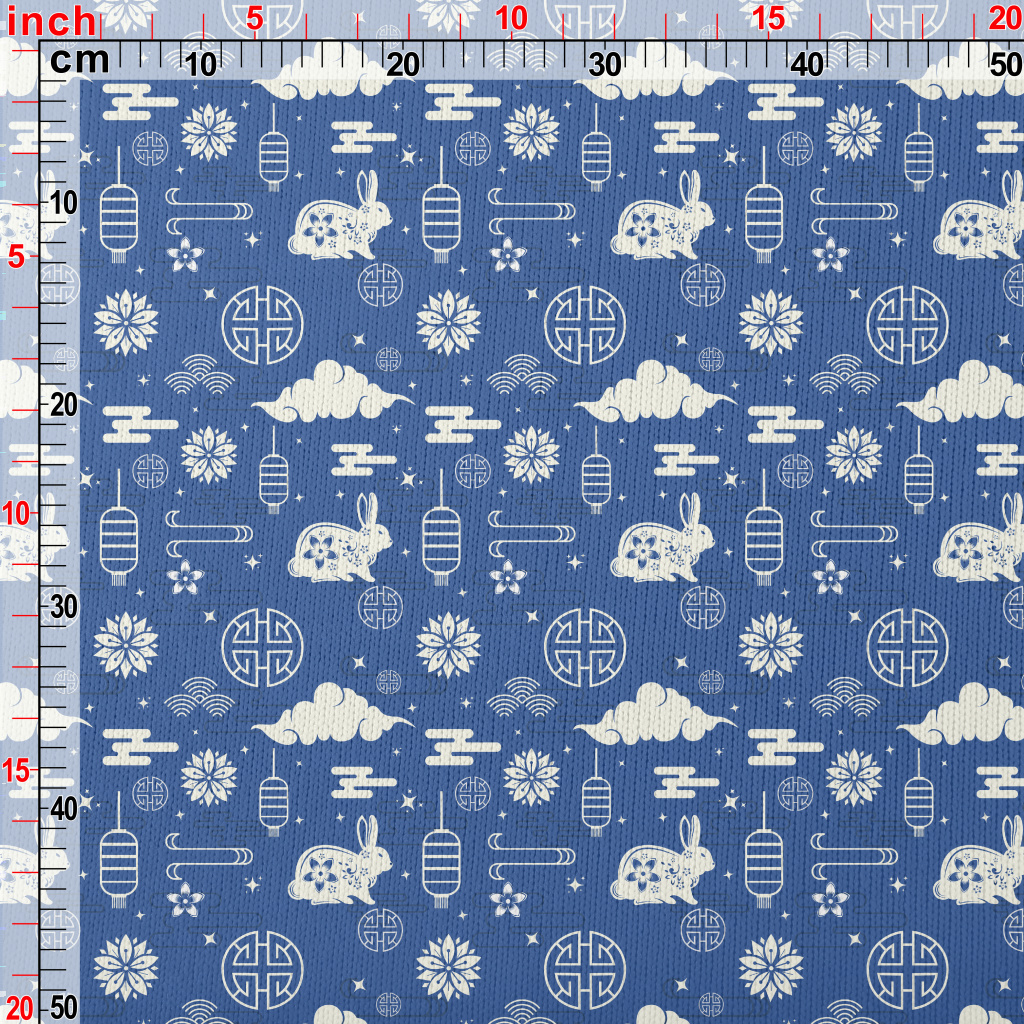 中式藍色兔年仿毛衣布(幅寬150公分)