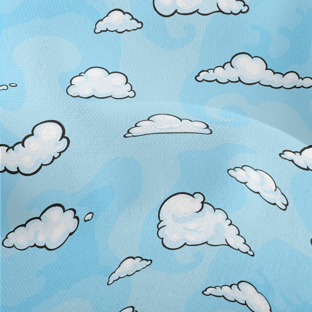 卡通藍色雲朵竹節麻(幅寬150公分)