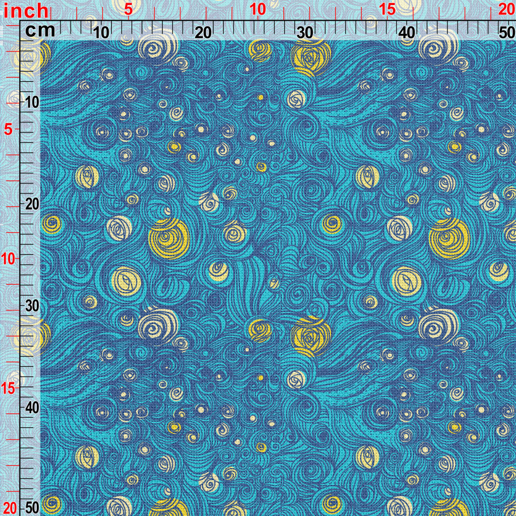 手繪藍色漩渦麻布(幅寬150公分)
