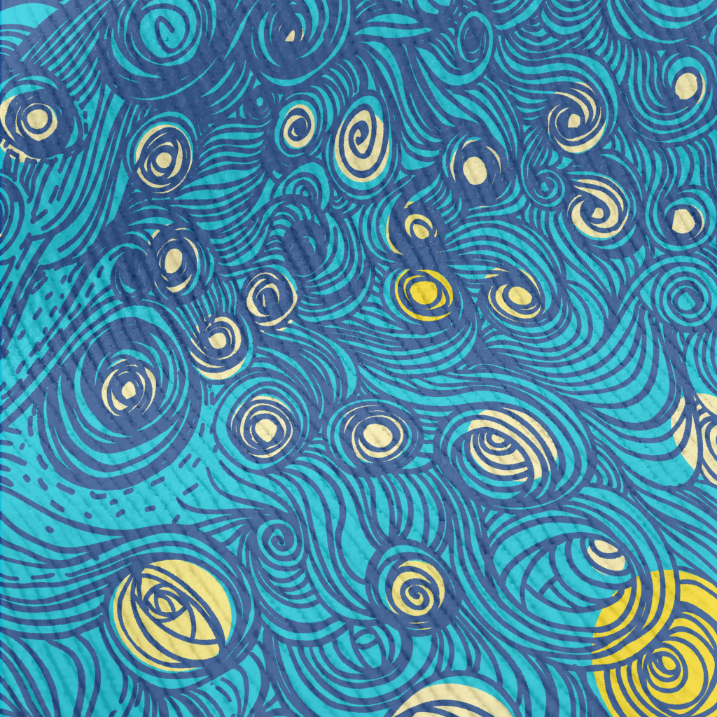 手繪藍色漩渦燈芯絨(幅寬150公分)