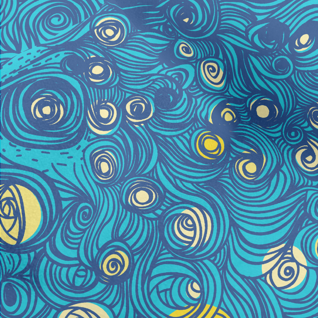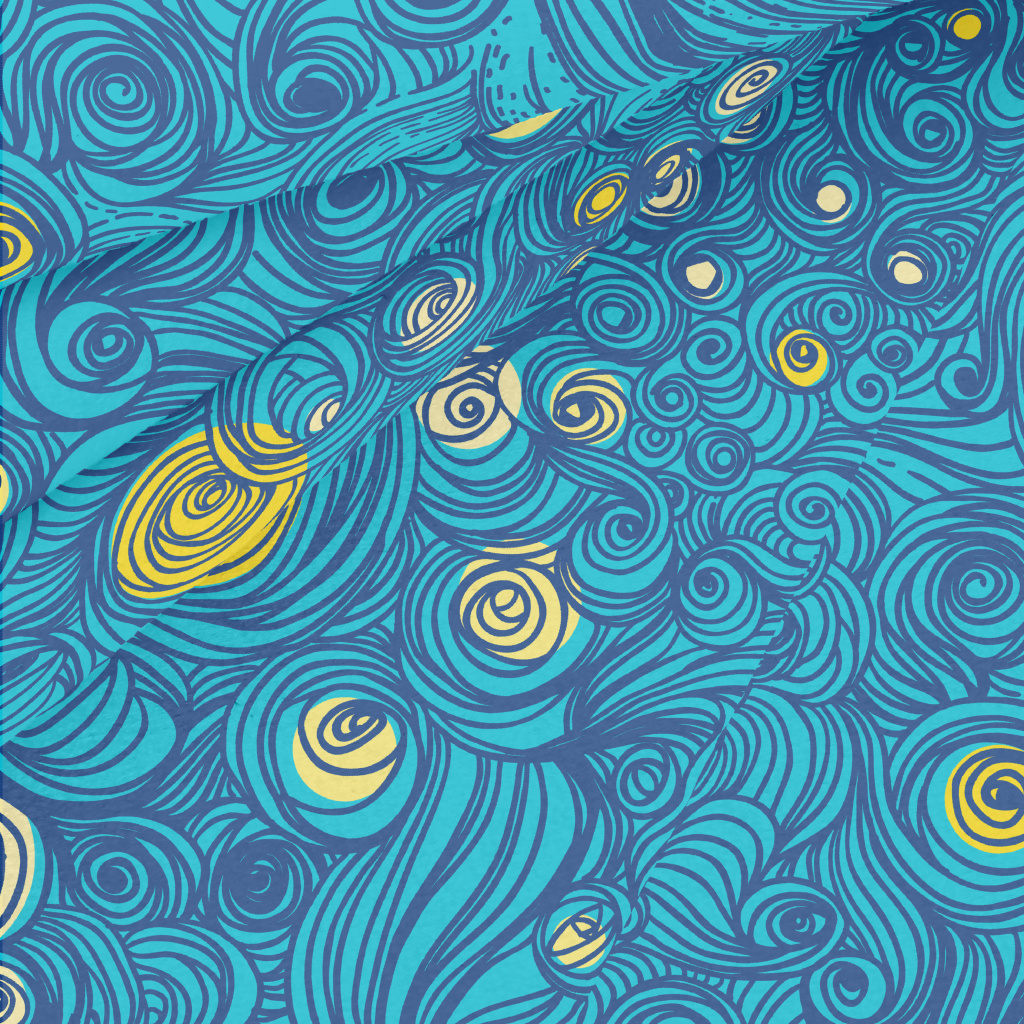 手繪藍色漩渦水晶絨(幅寬160公分)