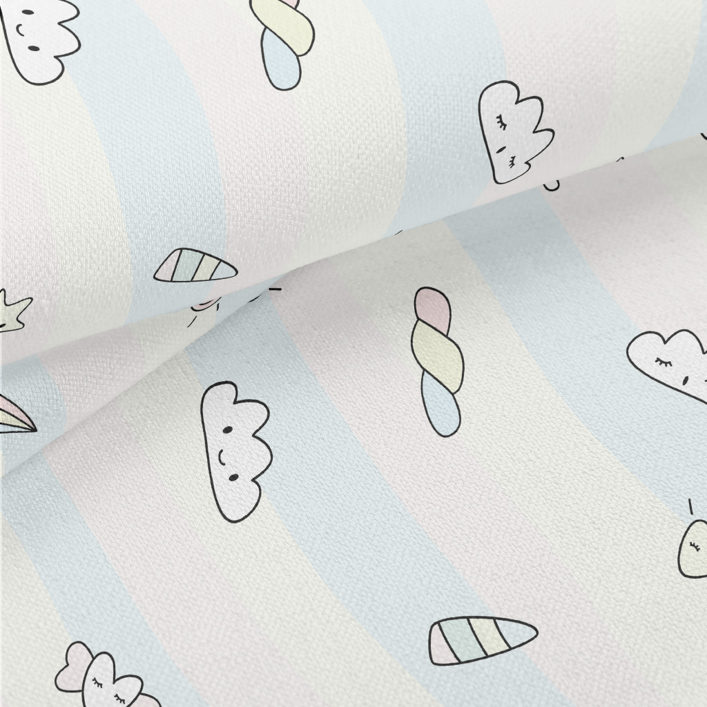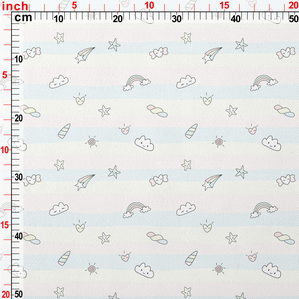 彩虹與糖果塗鴉竹節麻(幅寬150公分)