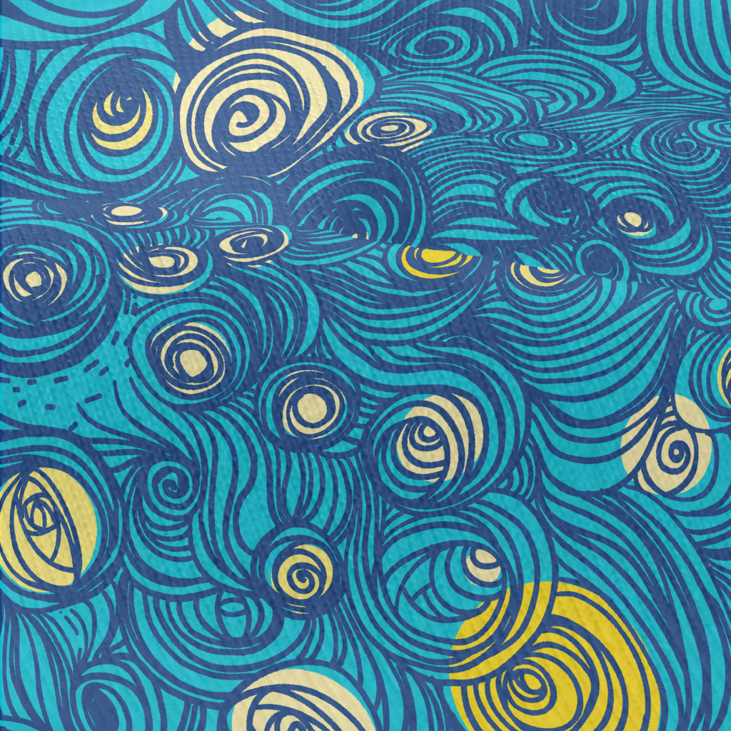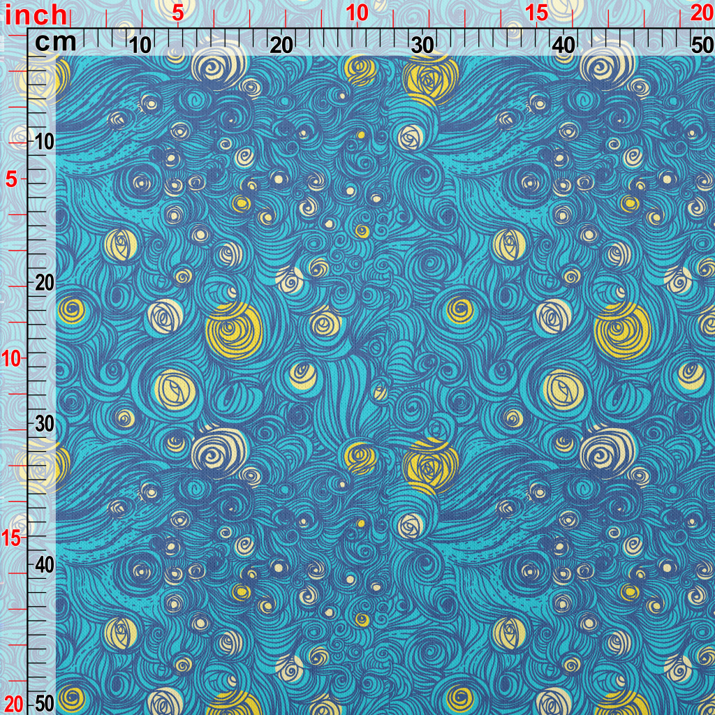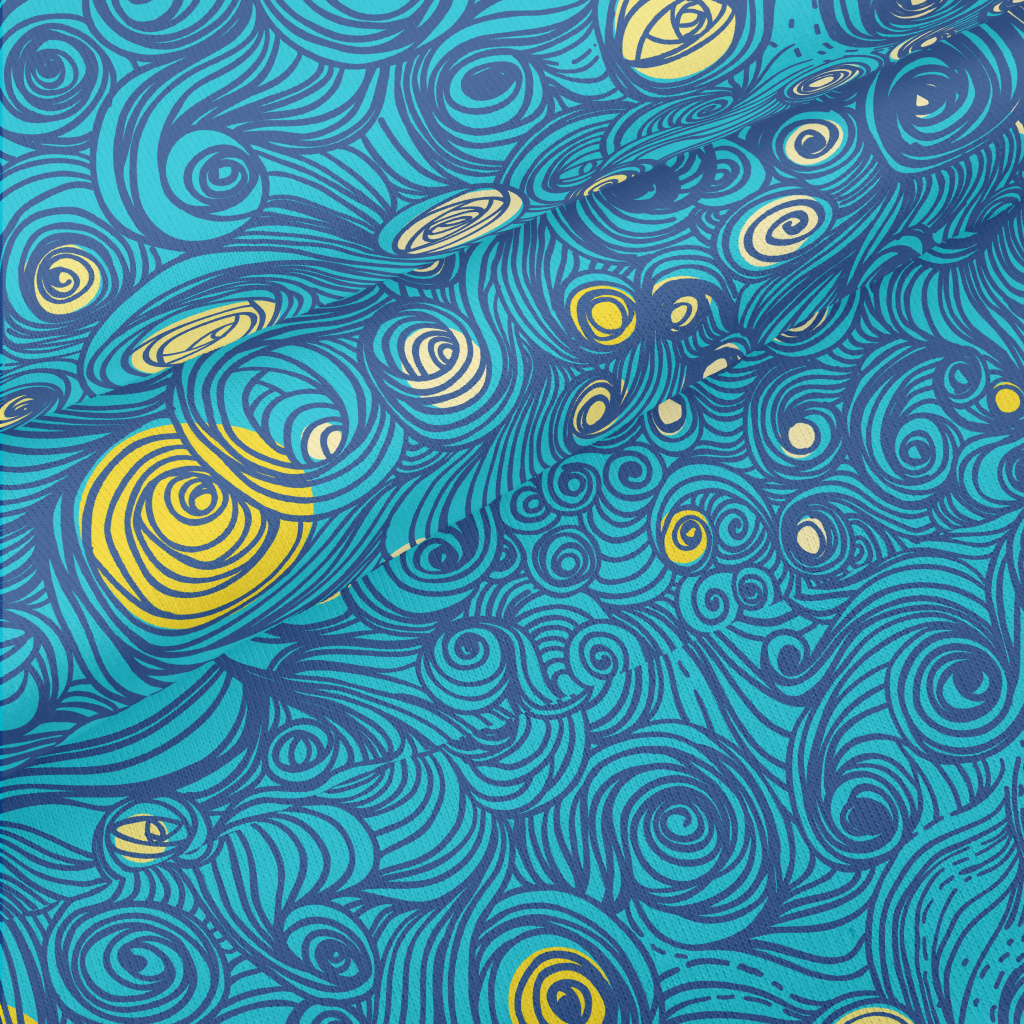 手繪藍色漩渦仿棉布(幅寬150公分)