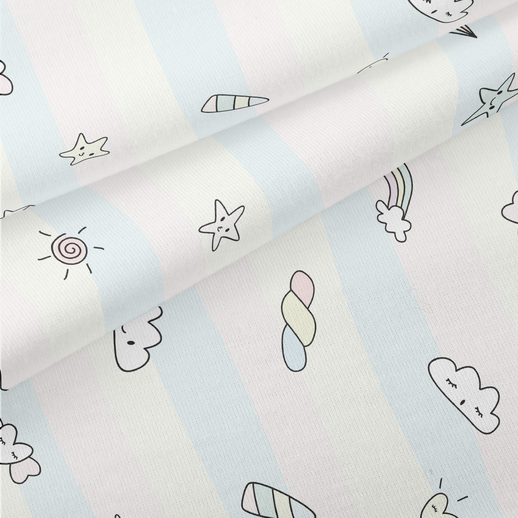 彩虹與糖果塗鴉仿棉布(幅寬150公分)