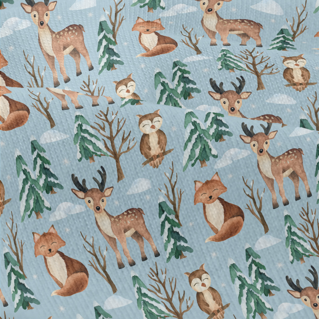 冬季森林動物仿棉布(幅寬150公分)