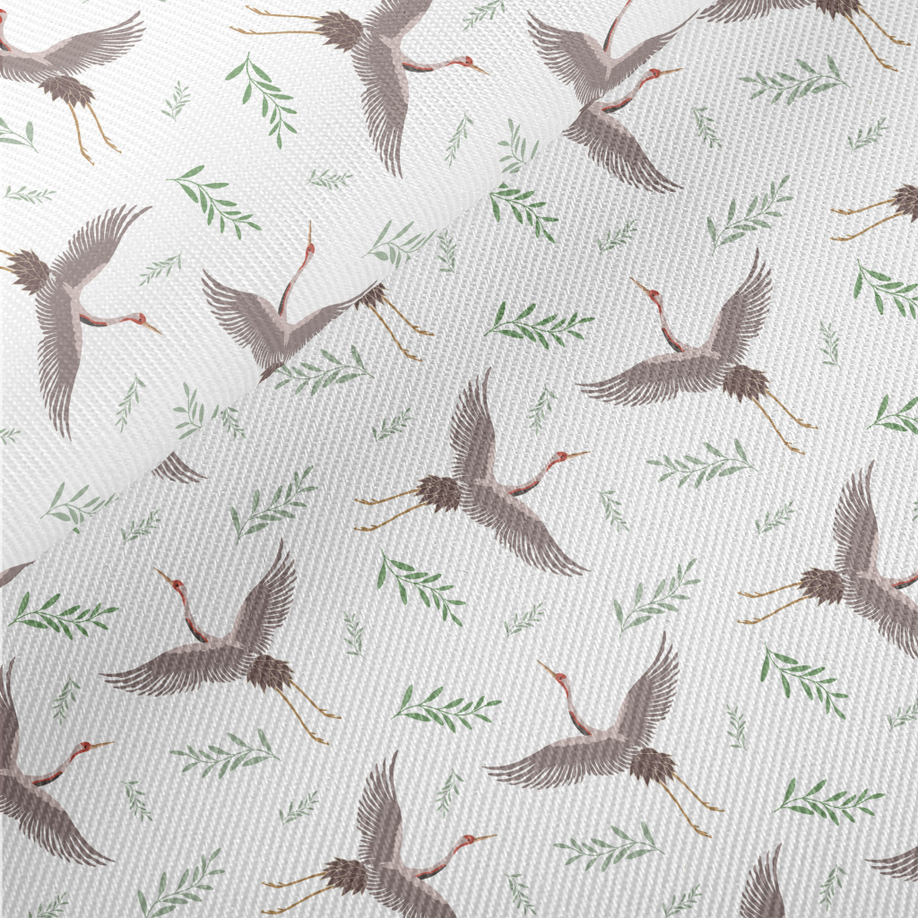 卡通鶴與樹葉斜紋布(幅寬150公分)