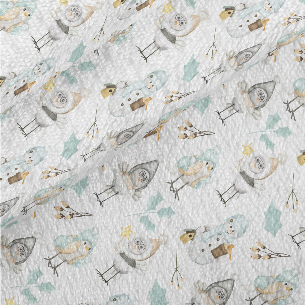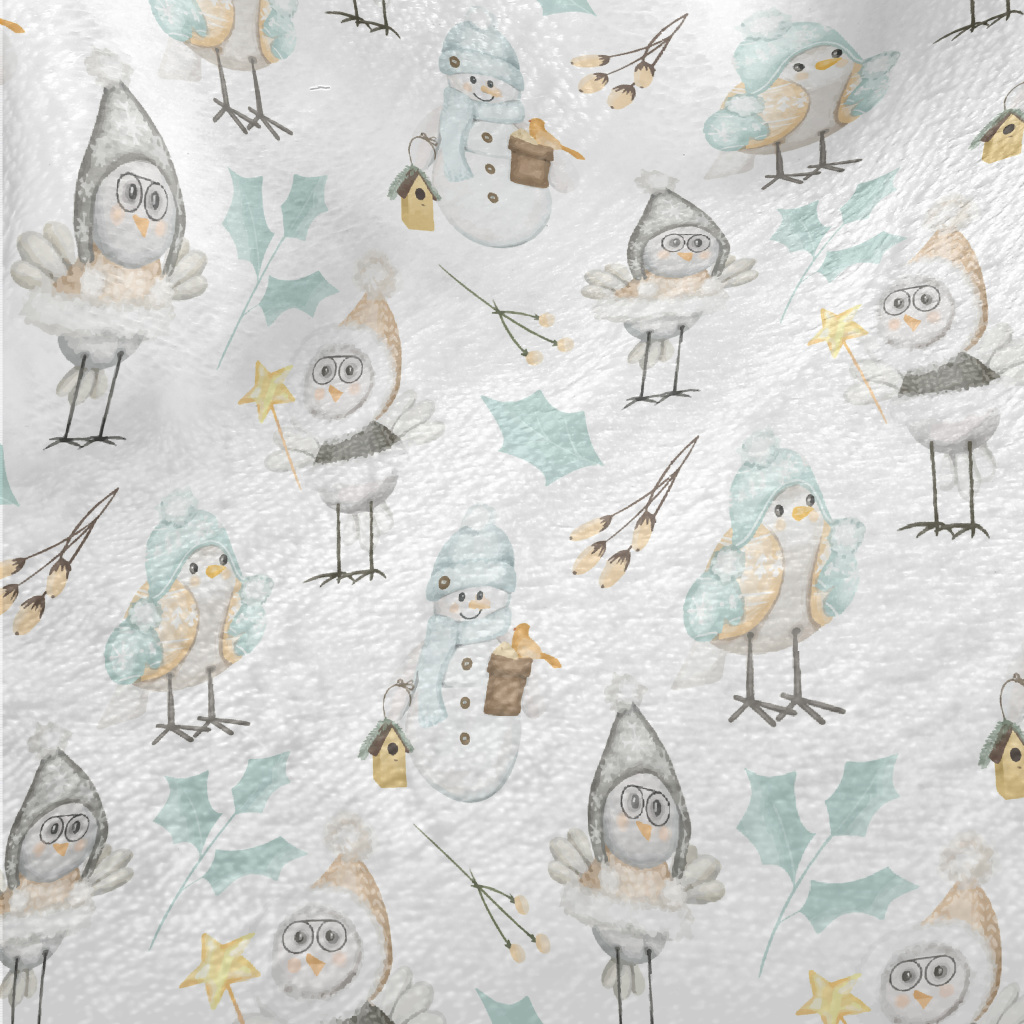 冬季小鳥與雪人法蘭絨(幅寬150公分)