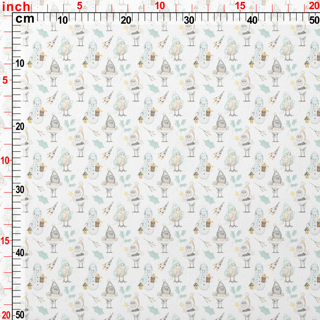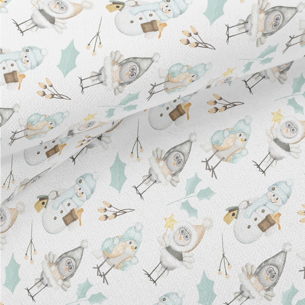 冬季小鳥與雪人竹節麻(幅寬150公分)