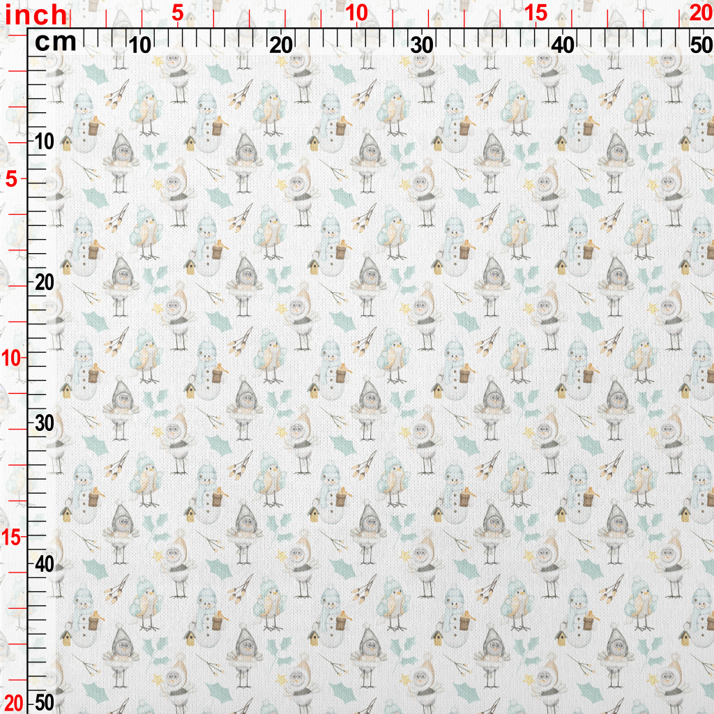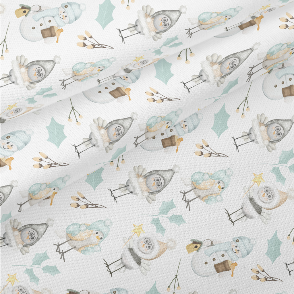 冬季小鳥與雪人仿棉布(幅寬150公分)