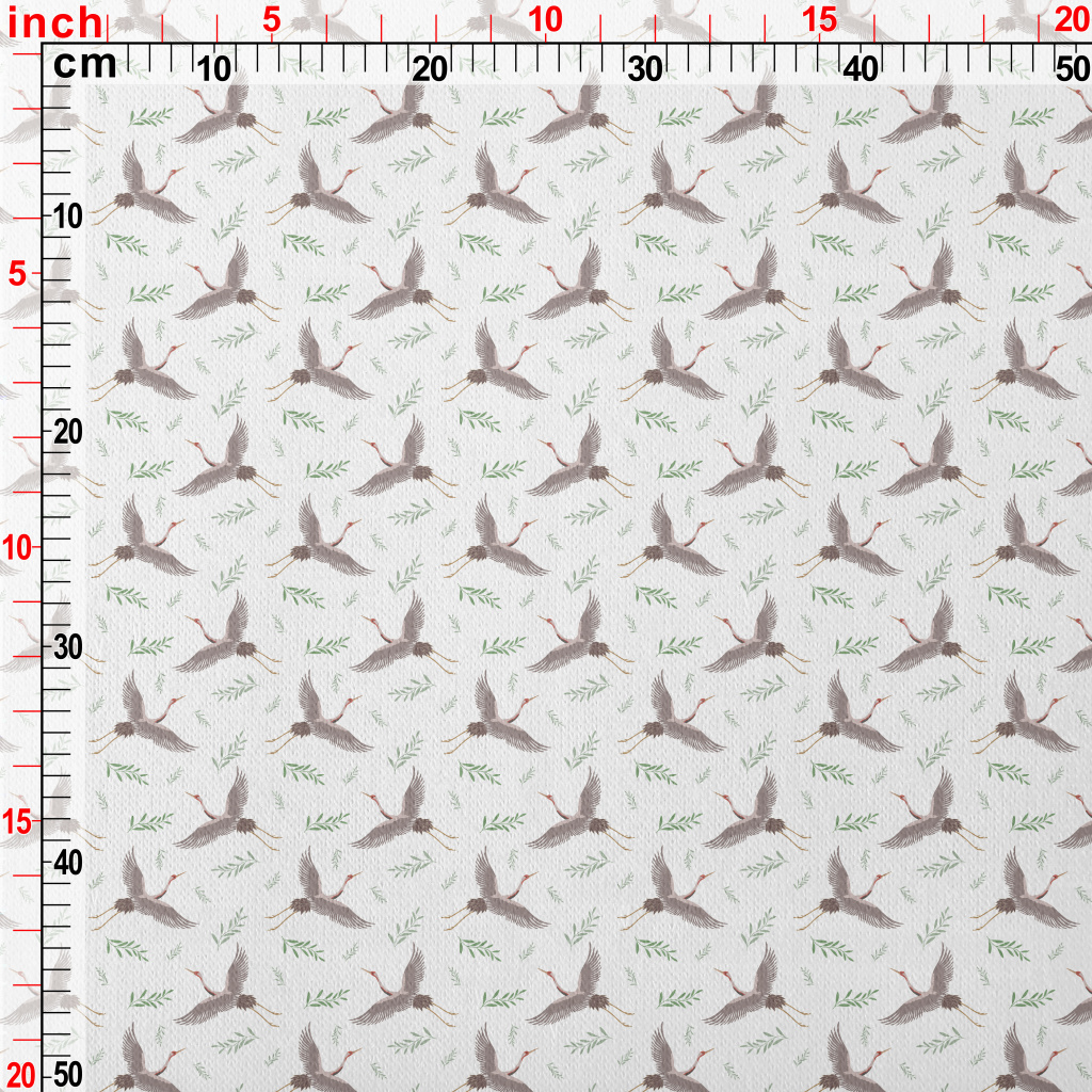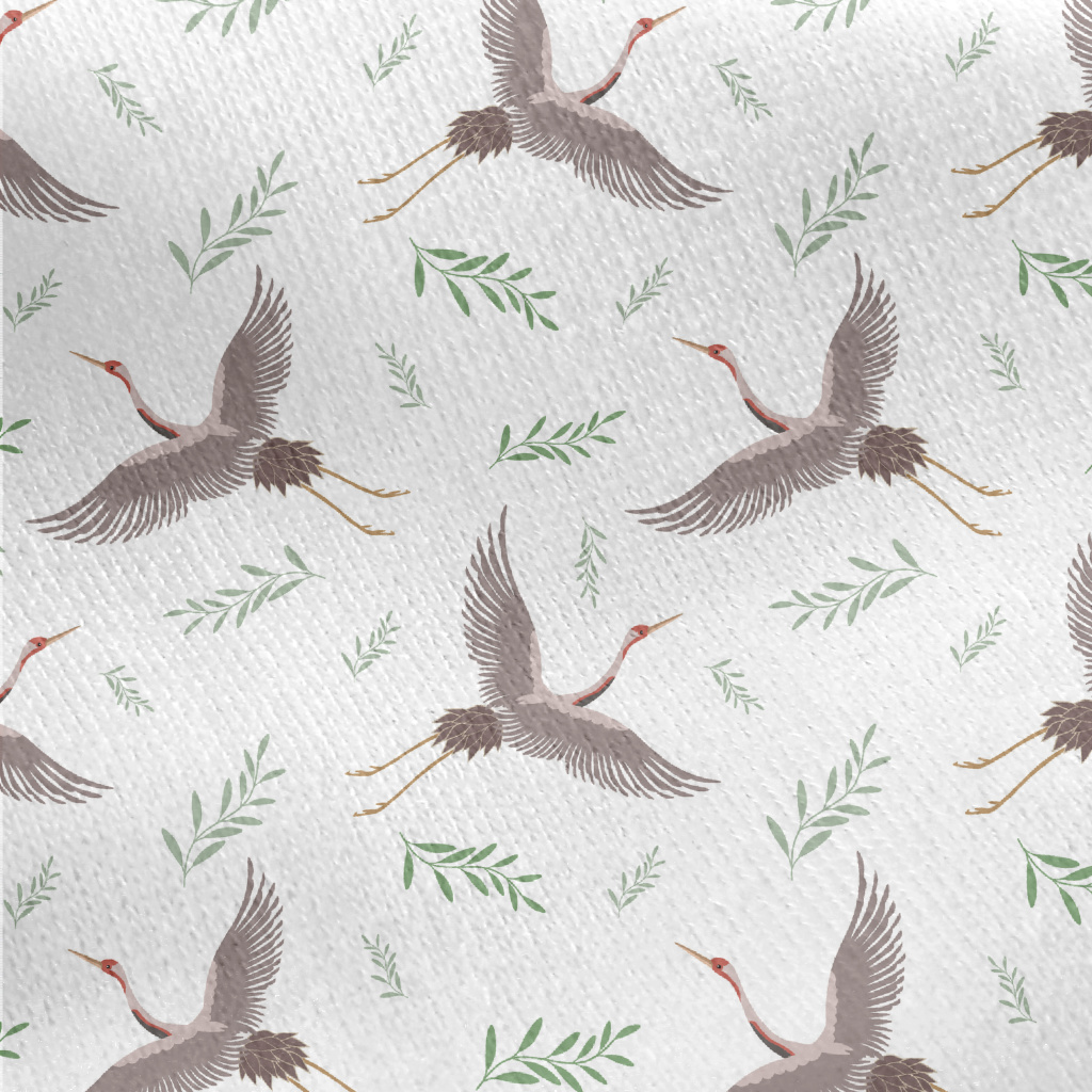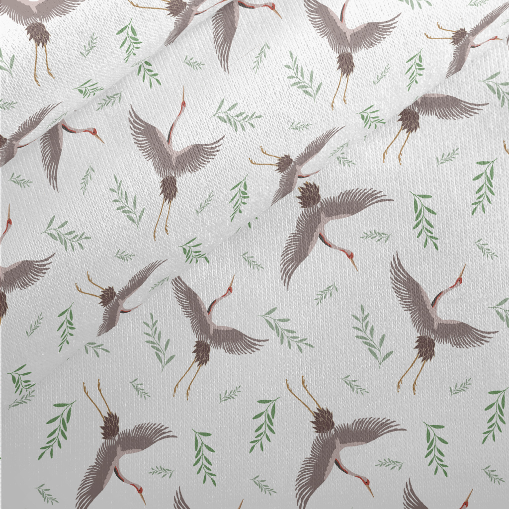 卡通鶴與樹葉刷毛布(幅寬150公分)