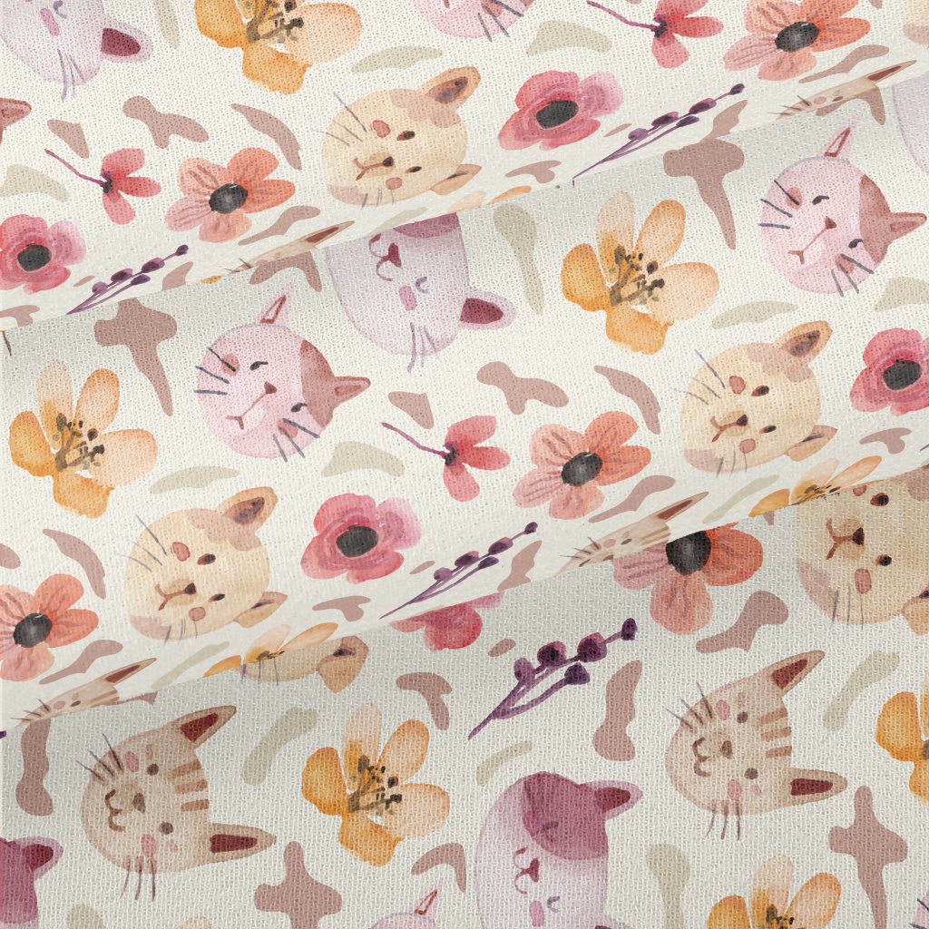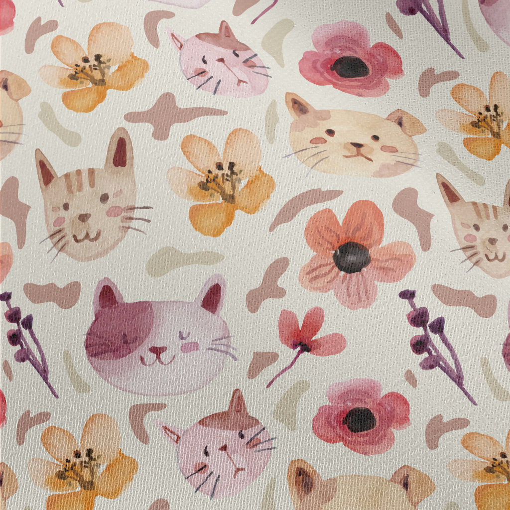 水彩貓咪與小花雪紡布(幅寬150公分)